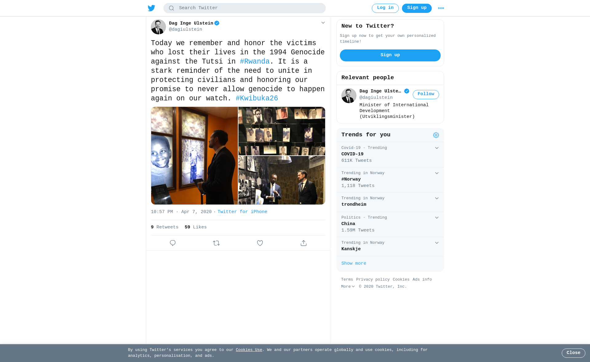 Today we remember and honor the victims who lost their lives in the 1994 Genocide against the Tutsi in #Rwanda. It is a stark reminder of the need to unite in protecting civilians and honoring our promise to never allow genocide to happen again on our watch. #Kwibuka26 https://t.co/IKirBPrll6