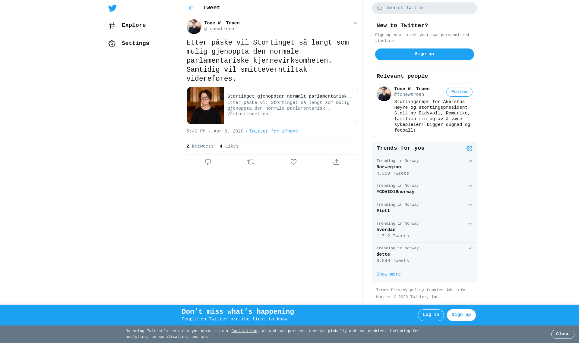 Etter påske vil Stortinget så langt som mulig gjenoppta den normale parlamentariske kjernevirksomheten. Samtidig vil smitteverntiltak videreføres. https://t.co/NEYQ137iat