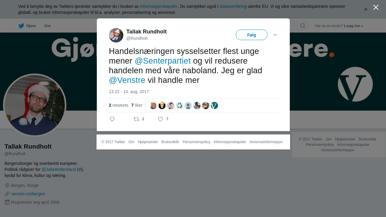 RT @Rundholt: Handelsnæringen sysselsetter flest unge mener @Senterpartiet og vil redusere handelen med våre naboland. Jeg er glad @Venstre vil handle mer