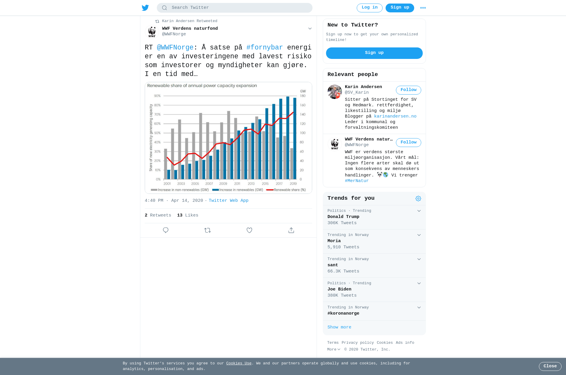 RT @WWFNorge: Å satse på #fornybar energi er en av investeringene med lavest risiko som investorer og myndigheter kan gjøre. I en tid med…