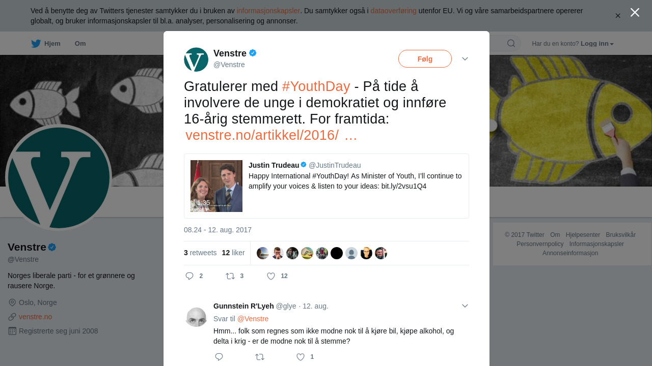 Gratulerer med #YouthDay - På tide å involvere de unge i demokratiet og innføre 16-årig stemmerett. For framtida:… https://t.co/IfX2nZhl7c
