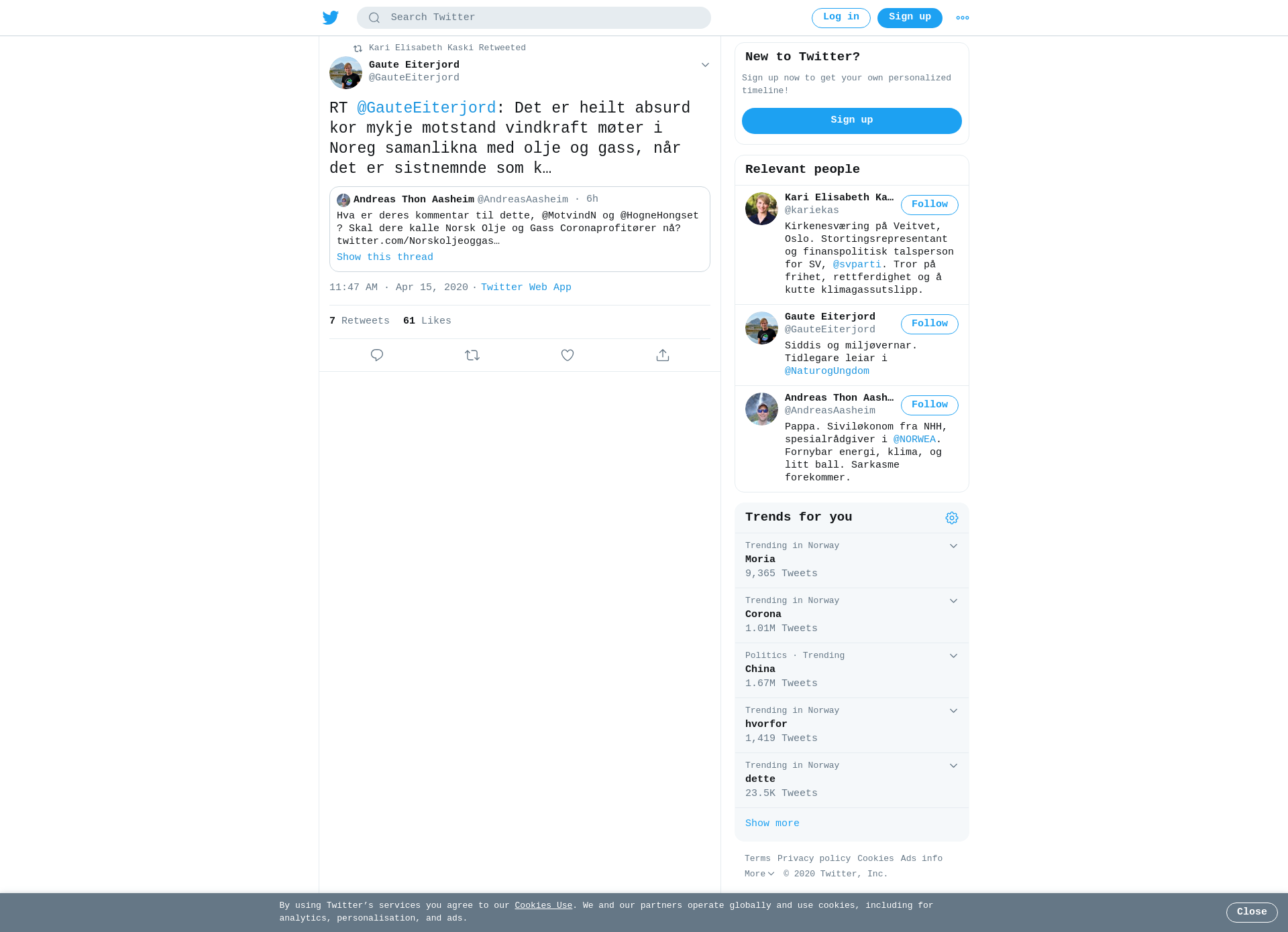 RT @GauteEiterjord: Det er heilt absurd kor mykje motstand vindkraft møter i Noreg samanlikna med olje og gass, når det er sistnemnde som koker kloden vår