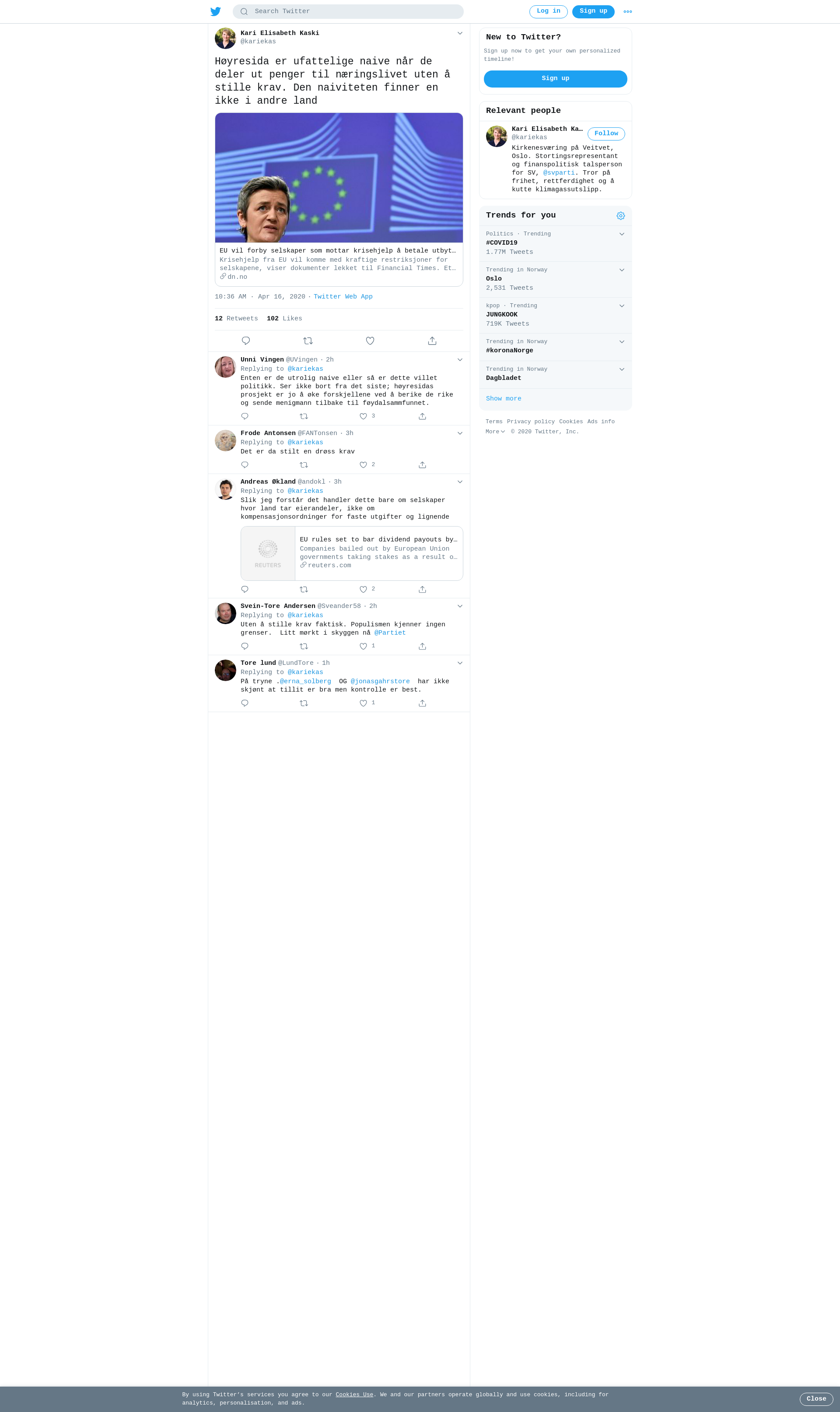 Høyresida er ufattelige naive når de deler ut penger til næringslivet uten å stille krav. Den naiviteten finner en ikke i andre land https://t.co/c9uR3OMW4S