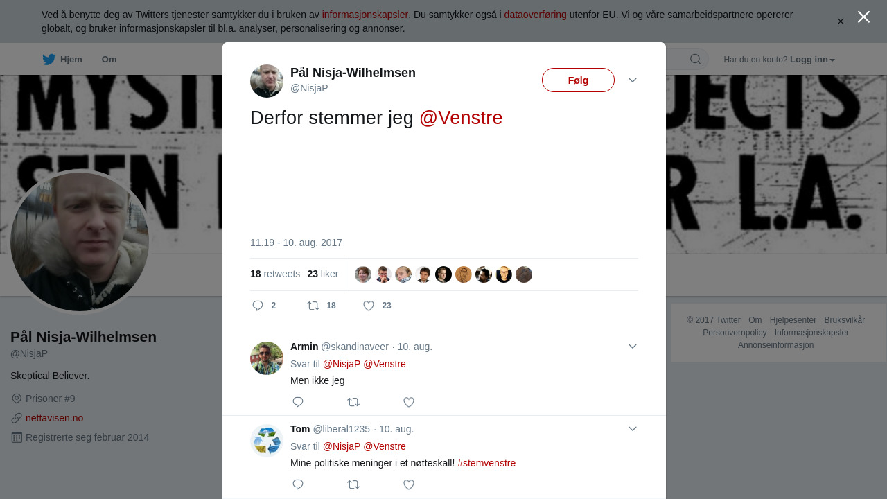 RT @NisjaP: Derfor stemmer jeg @Venstre https://t.co/JmFUqdyh78