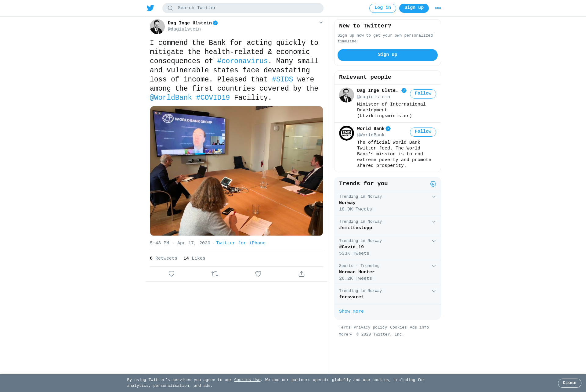I commend the Bank for acting quickly to mitigate the health-related & economic consequences of #coronavirus. Many small and vulnerable states face devastating loss of income. Pleased that #SIDS were among the first countries covered by the @WorldBank #COVID19 Facility. https://t.co/qhYbFdcfwz
