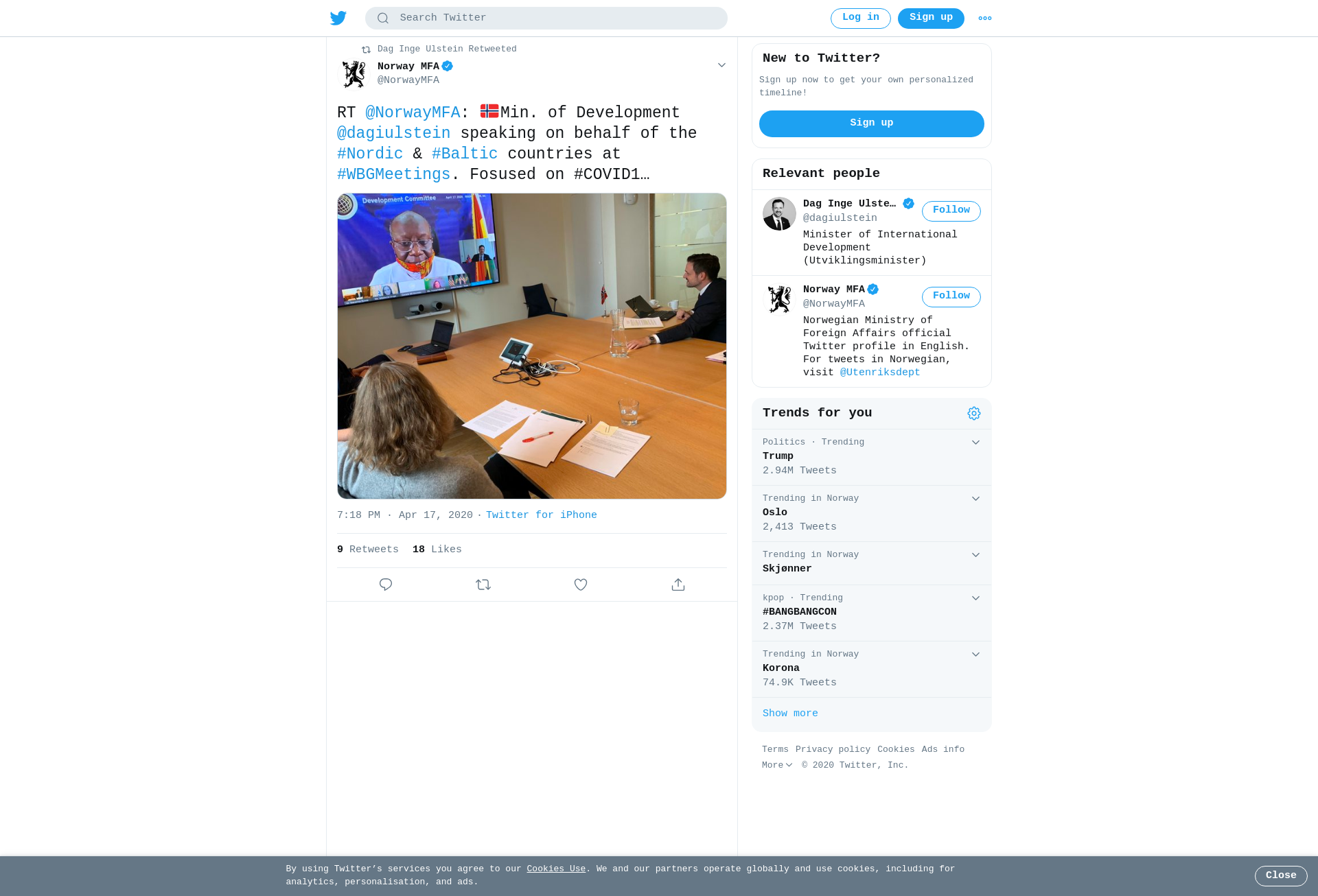RT @NorwayMFA: 🇳🇴Min. of Development @dagiulstein speaking on behalf of the #Nordic & #Baltic countries at #WBGMeetings. Fosused on #COVID19, debt relief, gender equality, fragile states. Communiqué from the meeting too weak on climate change