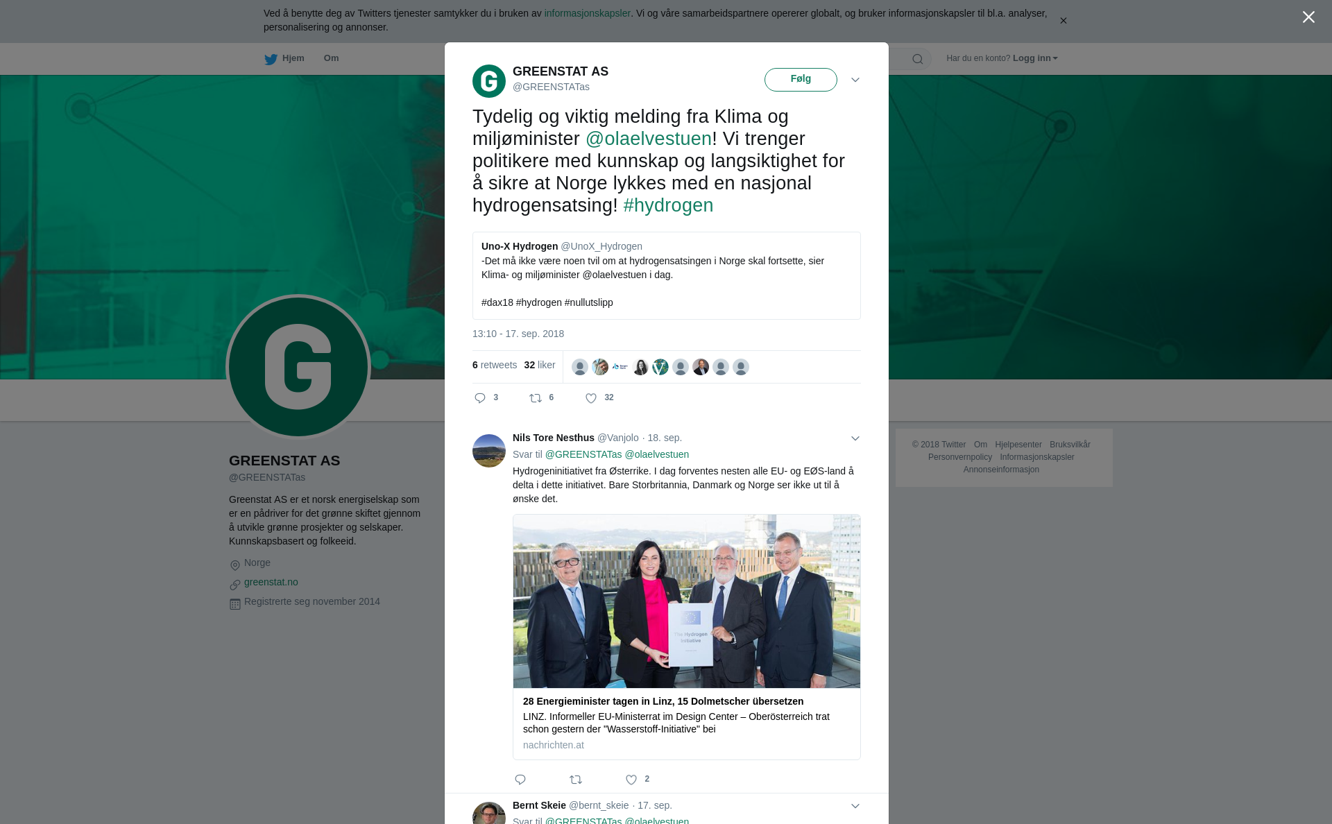 RT @GREENSTATas: Tydelig og viktig melding fra Klima og miljøminister @olaelvestuen! Vi trenger politikere med kunnskap og langsiktighet for å sikre at Norge lykkes med en nasjonal hydrogensatsing! #hydrogen https://t.co/c6dMwlW5OO