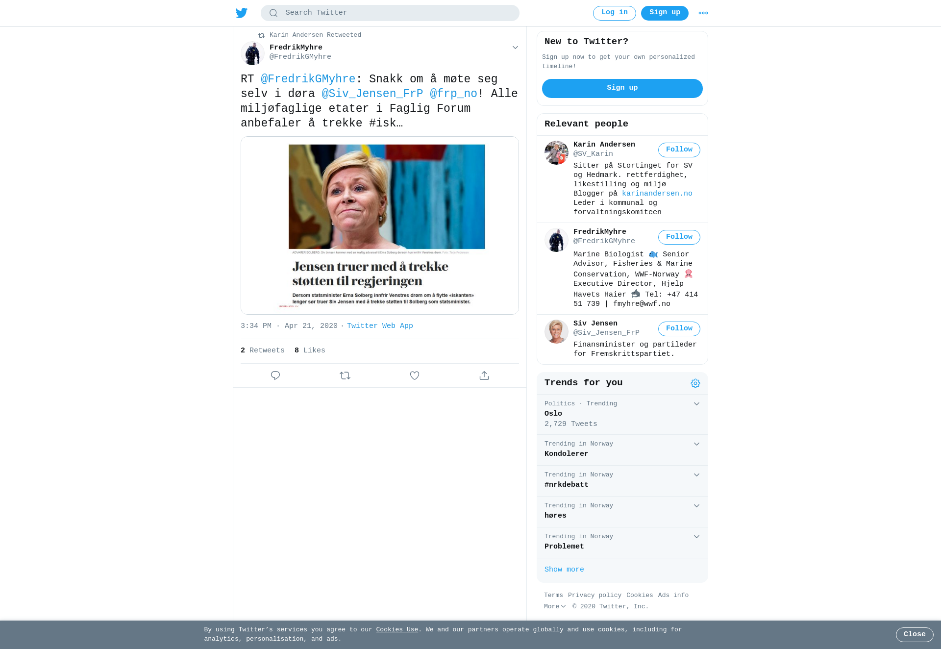 RT @FredrikGMyhre: Snakk om å møte seg selv i døra @Siv_Jensen_FrP @frp_no! Alle miljøfaglige etater i Faglig Forum anbefaler å trekke #iskanten sørover pga det er her naturen som lever i iskantsonen faktisk er. Det er FrP som driver politisk spill & ikke følger vitenskapen!