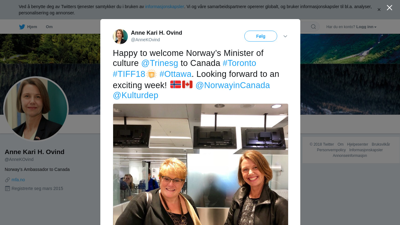 RT @AnneKOvind: Happy to welcome Norway’s Minister of culture @Trinesg to Canada #Toronto #TIFF18 #Ottawa. Looking forward to an exciting week! 🇳🇴🇨🇦 @NorwayinCanada @Kulturdep https://t.co/TwDcP5Mtid