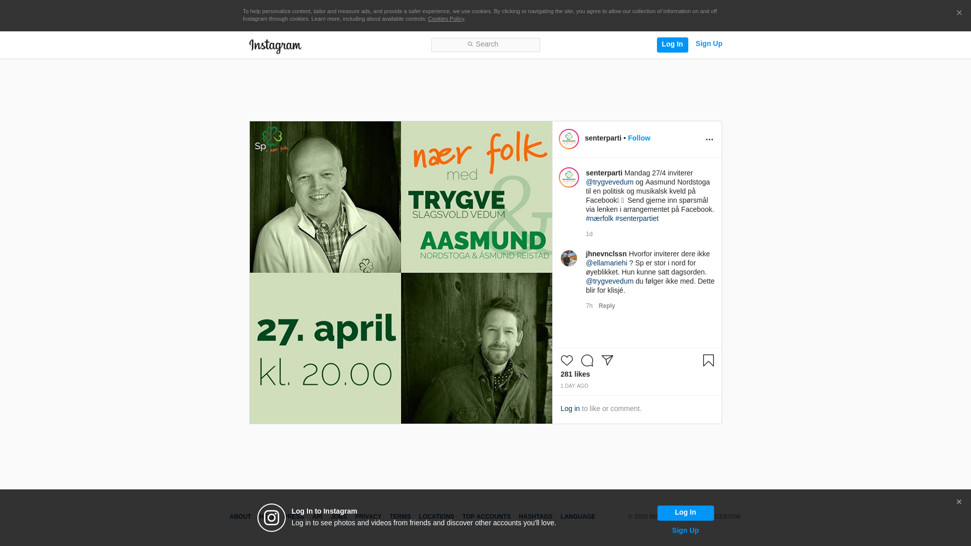 Mandag 27/4 inviterer @trygvevedum og Aasmund Nordstoga til en politisk og musikalsk kveld på Facebook😊🍀 Send gjerne inn spørsmål via lenken i arrangementet på Facebook. #nærfolk #senterpartiet