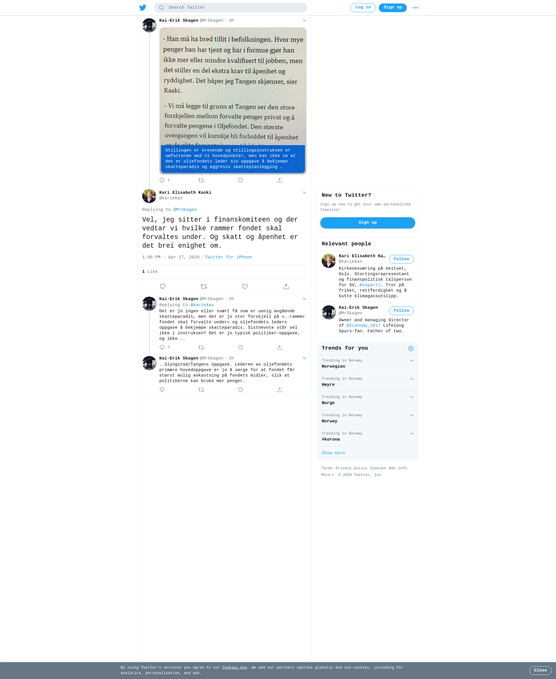 @MrSkagen Vel, jeg sitter i finanskomiteen og der vedtar vi hvilke rammer fondet skal forvaltes under. Og skatt og åpenhet er det brei enighet om.