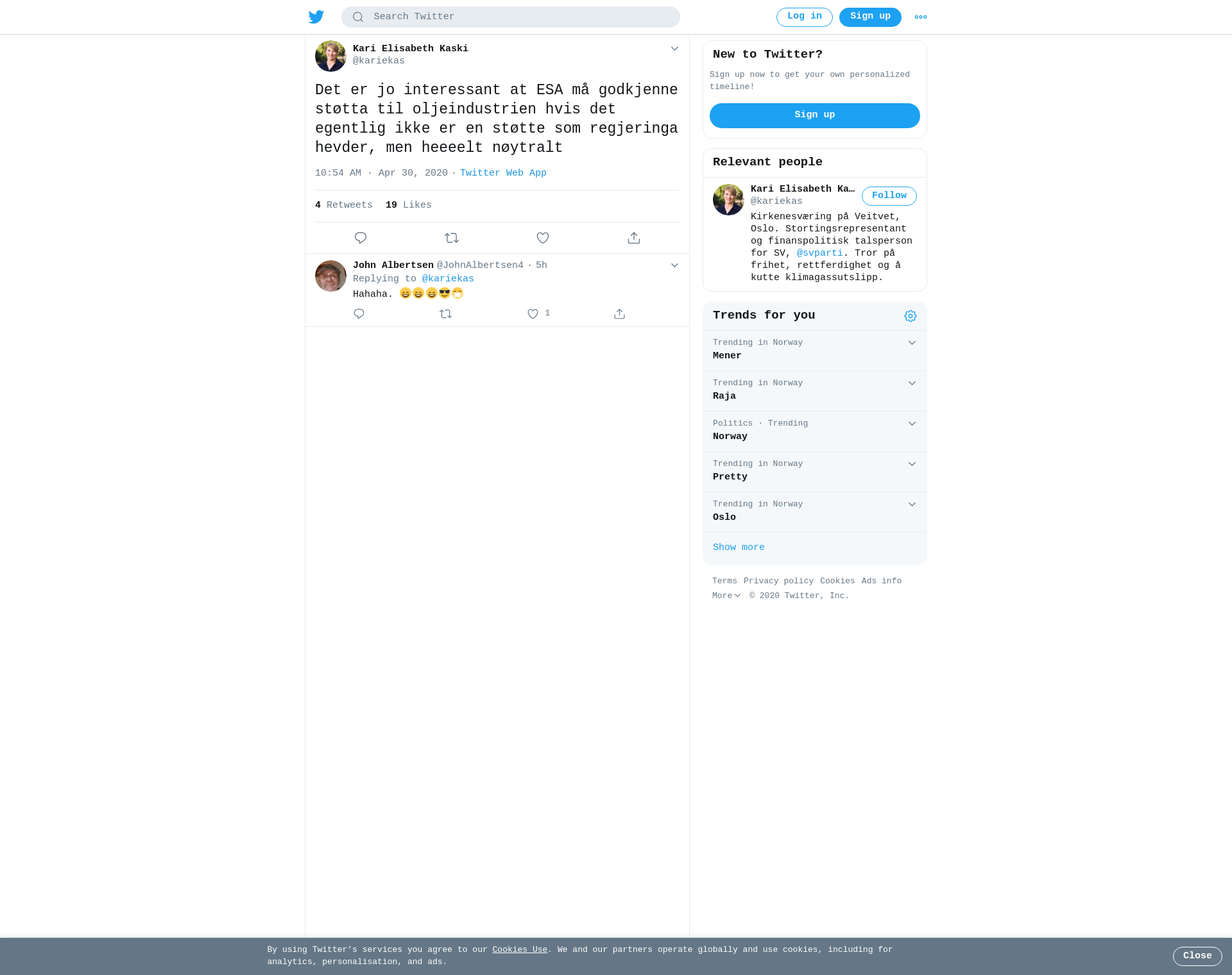 Det er jo interessant at ESA må godkjenne støtta til oljeindustrien hvis det egentlig ikke er en støtte som regjeringa hevder, men heeeelt nøytralt