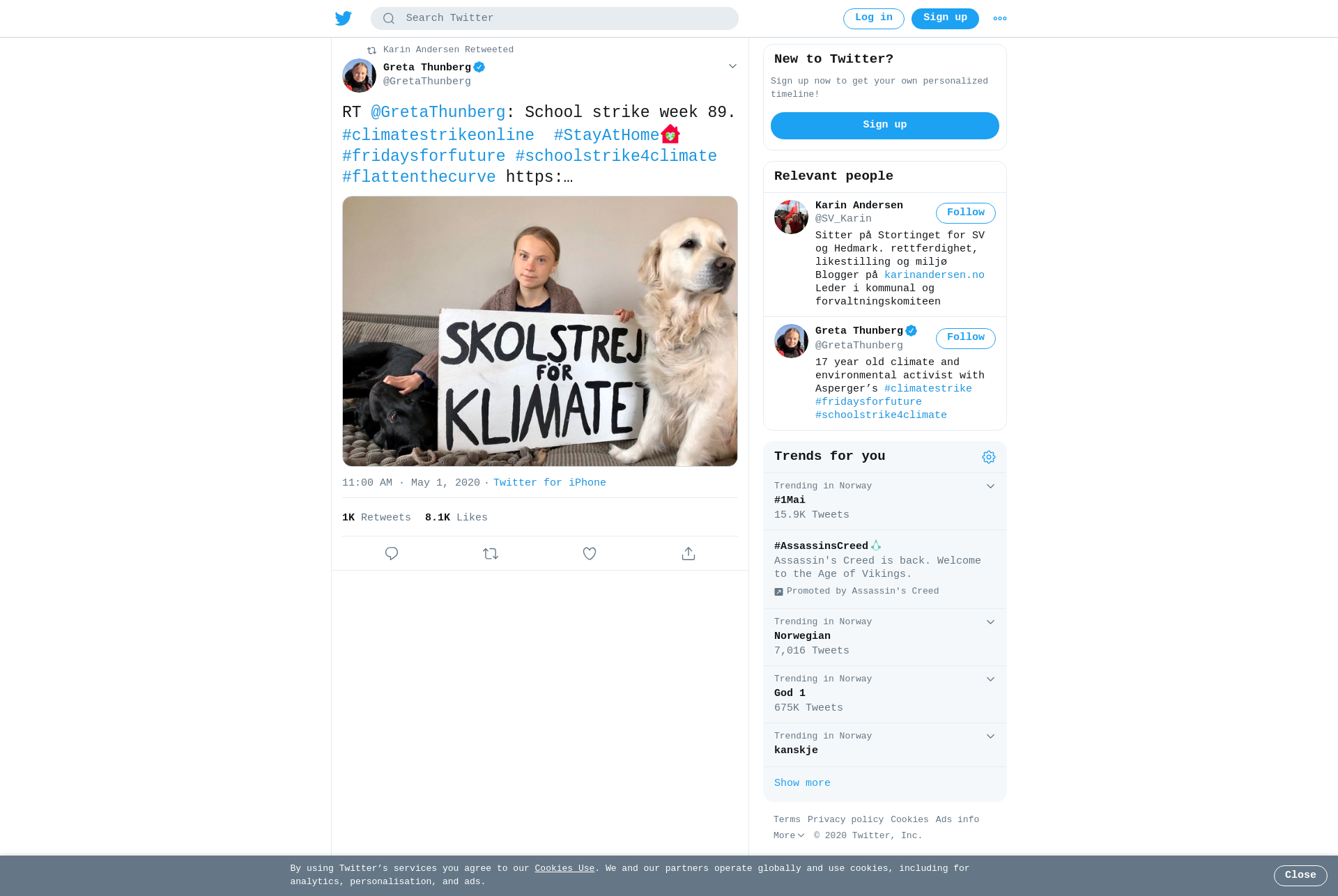 RT @GretaThunberg: School strike week 89. #climatestrikeonline #StayAtHome #fridaysforfuture #schoolstrike4climate #flattenthecurve https:…