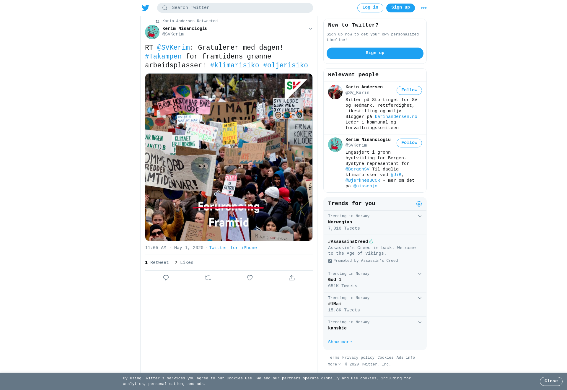 RT @SVKerim: Gratulerer med dagen! #Takampen for framtidens grønne arbeidsplasser! #klimarisiko #oljerisiko https://t.co/8v4rOF0sDu