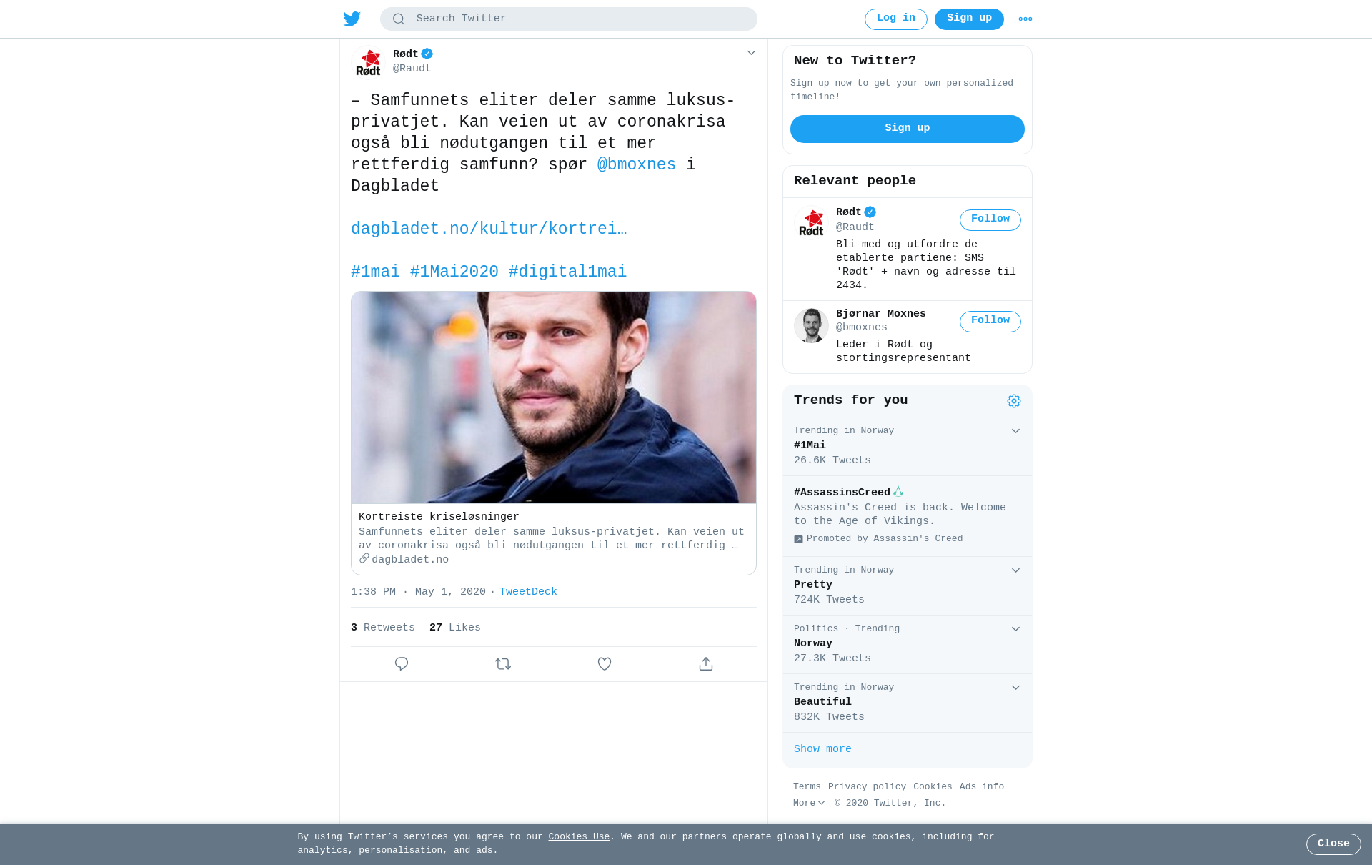 – Samfunnets eliter deler samme luksus-privatjet. Kan veien ut av coronakrisa også bli nødutgangen til et mer rettferdig samfunn? spør @bmoxnes i Dagbladet https://t.co/wAT4xlBflt #1mai #1Mai2020 #digital1mai