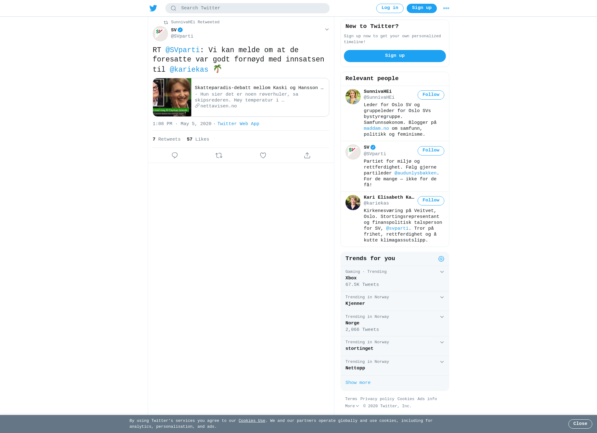 RT @SVparti: Vi kan melde om at de foresatte var godt fornøyd med innsatsen til @kariekas 🌴 https://t.co/Y6C5Ls8Asw