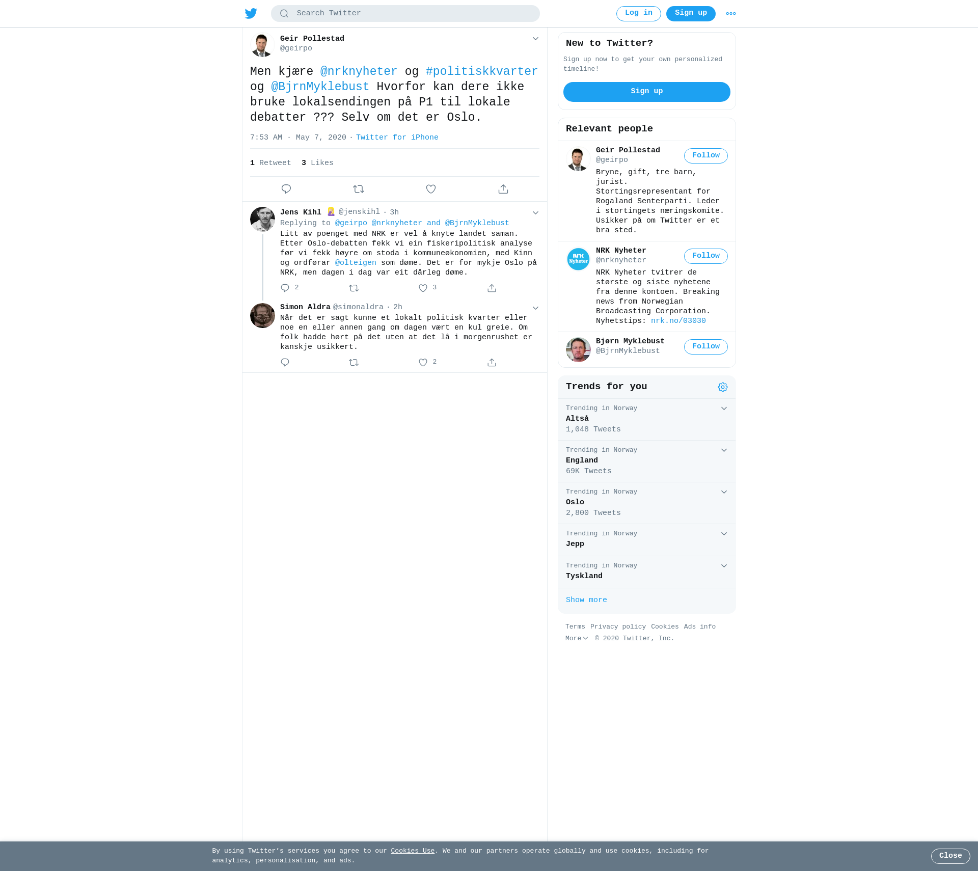 Men kjære @nrknyheter og #politiskkvarter og @BjrnMyklebust Hvorfor kan dere ikke bruke lokalsendingen på P1 til lokale debatter ??? Selv om det er Oslo.
