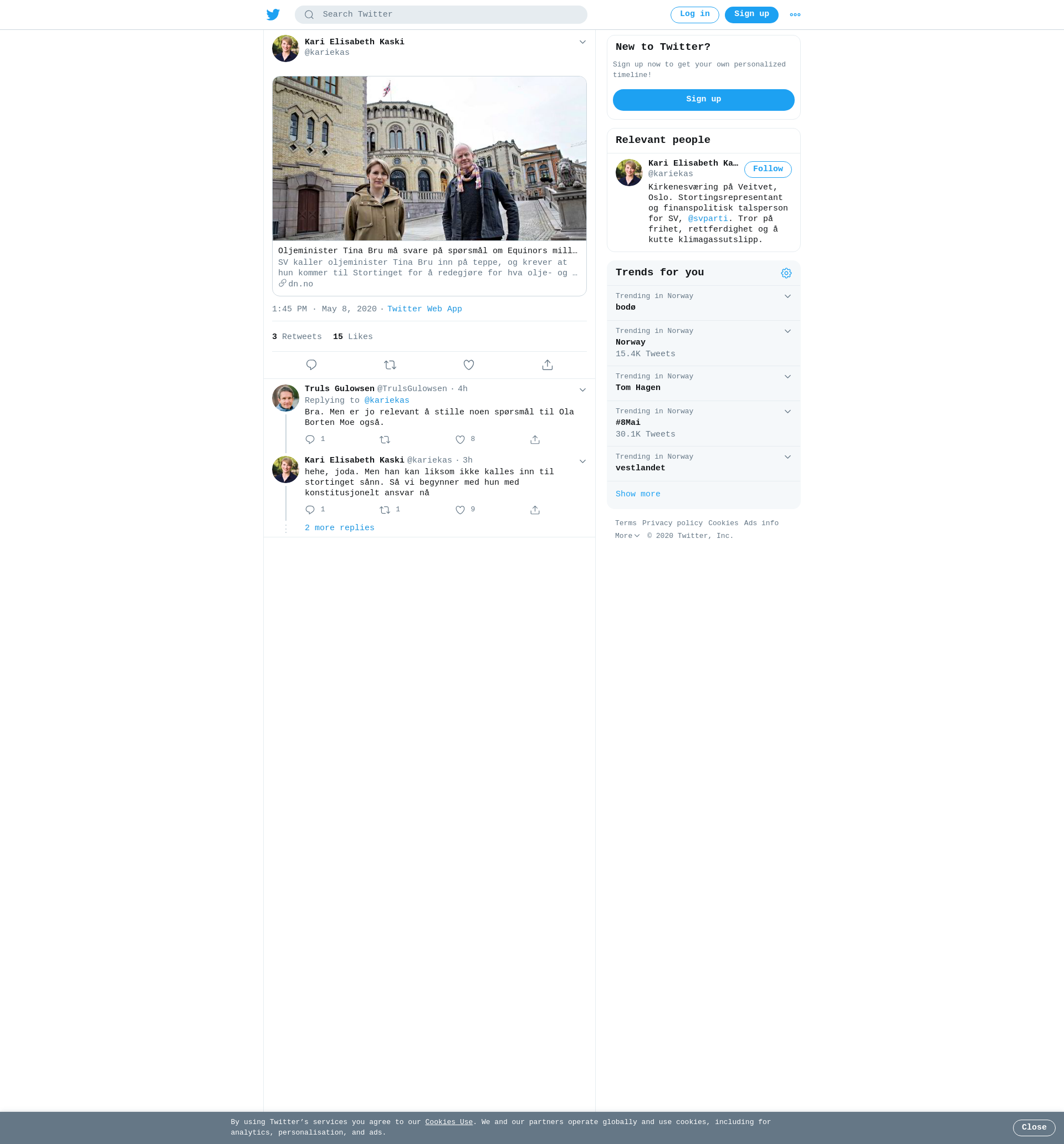 SV kaller oljeminister Tina Bru inn på teppe, og krever at hun kommer til Stortinget for å redegjøre for hva olje- og energidepartementet visste - og ikke visste - om Equinors milliardtap i USA.