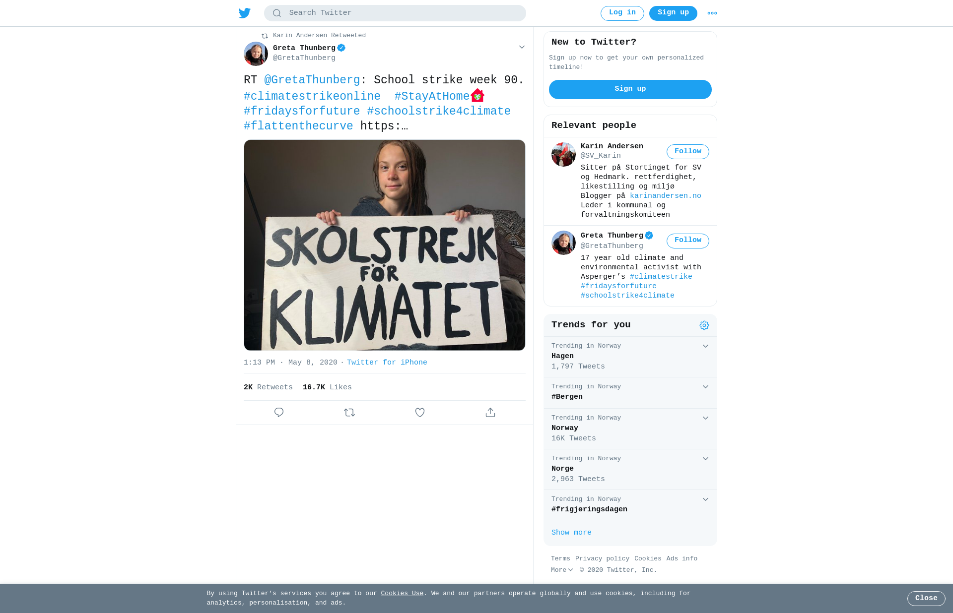 RT @GretaThunberg: School strike week 90. #climatestrikeonline #StayAtHome #fridaysforfuture #schoolstrike4climate #flattenthecurve https:…