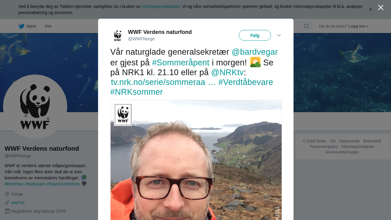 RT @WWFNorge: Vår naturglade generalsekretær @bardvegar er gjest på #Sommeråpent i morgen! 🌄 Se på NRK1 kl. 21.10 eller på @NRKtv… https://t.co/YZ8TIek381