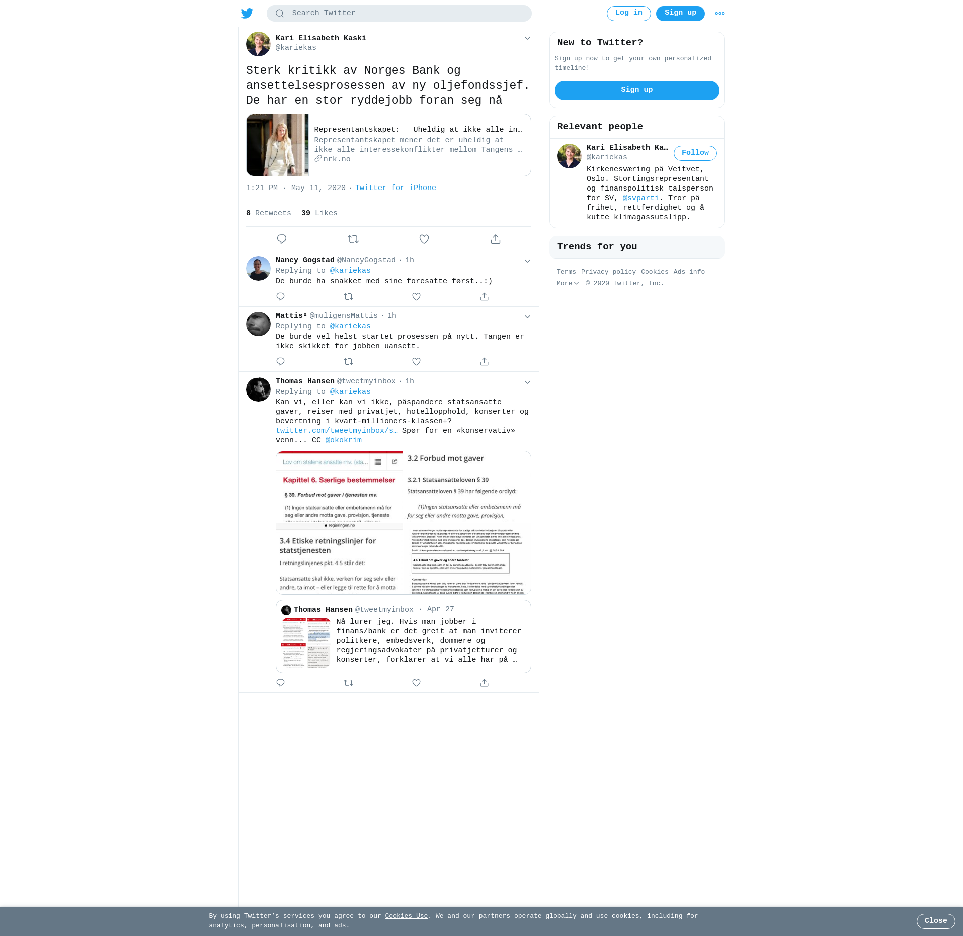 Representantskapet mener det er uheldig at ikke alle interessekonflikter mellom Tangens økonomi og rollen som daglig leder for NBIM er avklart før ansettelsen, skriver de i et brev til hovedstyret.