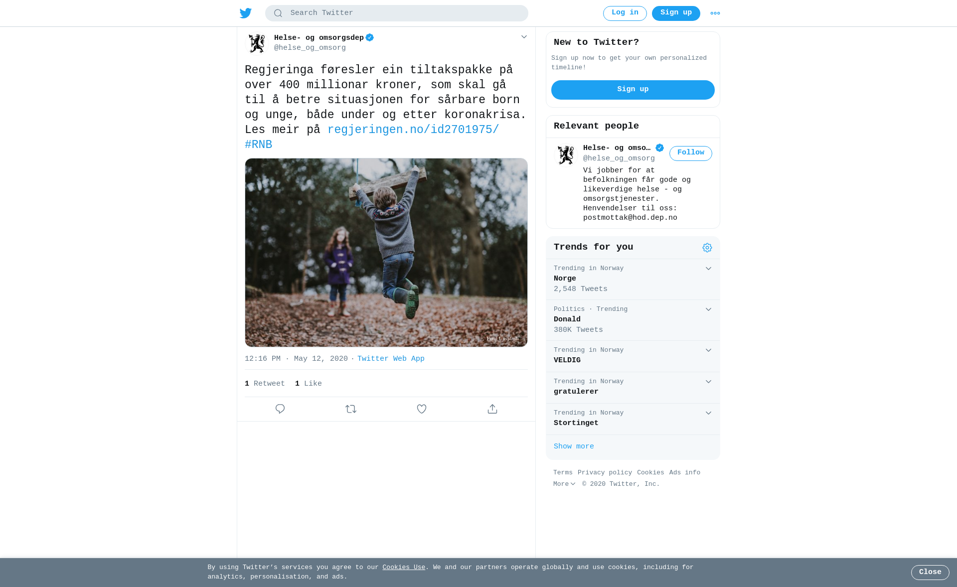 Regjeringa føresler ein tiltakspakke på over 400 millionar kroner, som skal gå til å betre situasjonen for sårbare born og unge, både under og etter koronakrisa. Les meir på https://t.co/pEEsimbasl #RNB https://t.co/IyivnufY2T