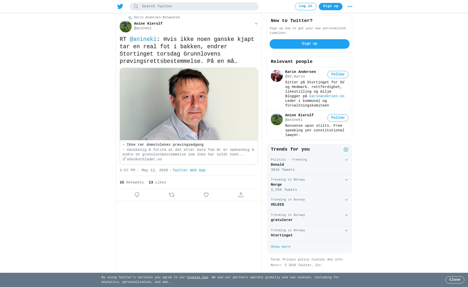 RT @anineki: Hvis ikke noen ganske kjapt tar en real fot i bakken, endrer Stortinget torsdag Grunnlovens prøvingsrettsbestemmelse. På en måte vi er mange som klør oss i hodet av.  https://t.co/tcvzyBlHa5 #jus2111 @jcfnordrum @jonwesselaas @HFMarthinussen