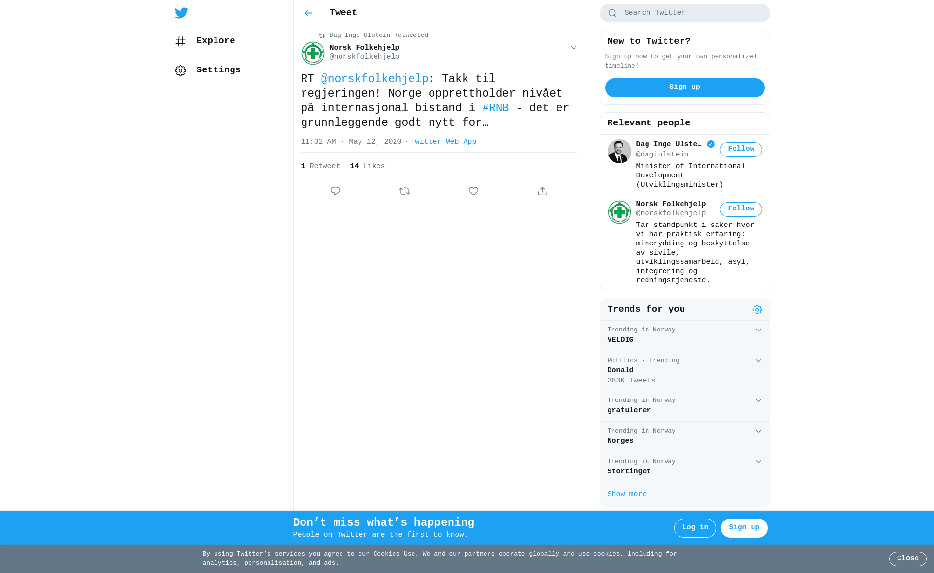 RT @norskfolkehjelp: Takk til regjeringen! Norge opprettholder nivået på internasjonal bistand i #RNB - det er grunnleggende godt nytt for de som rammes hardest av #koronakrisen. Vi kan ikke dra stigen opp etter oss i en krise som er global. @erna_solberg @jantoresanner @dagiulstein