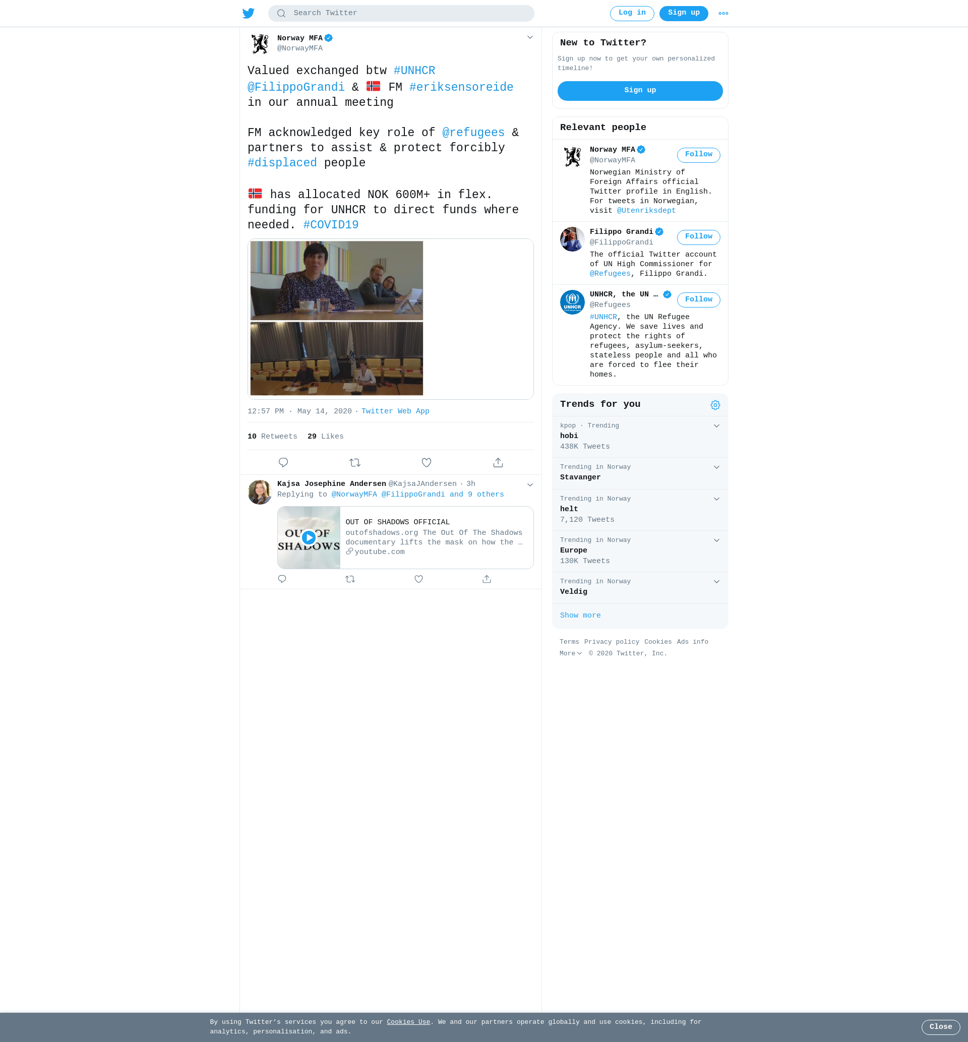 🇳🇴 has allocated NOK 600M+ in flex. funding for UNHCR to direct funds where needed. #COVID19 https://t.co/QXMigvjX8D