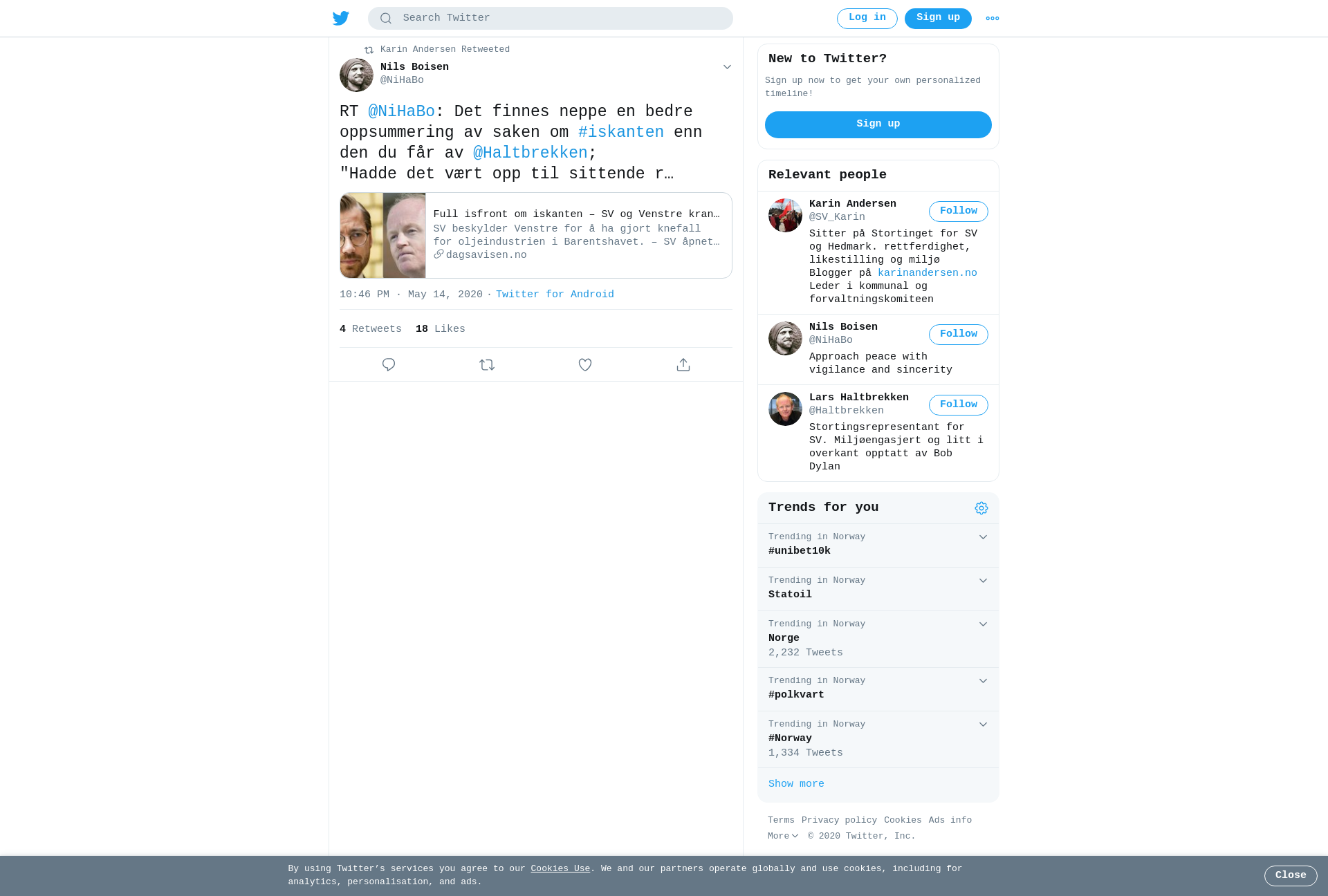 RT @NiHaBo: Det finnes neppe en bedre oppsummering av saken om #iskanten enn den du får av @Haltbrekken; "Hadde det vært opp til sittende r…