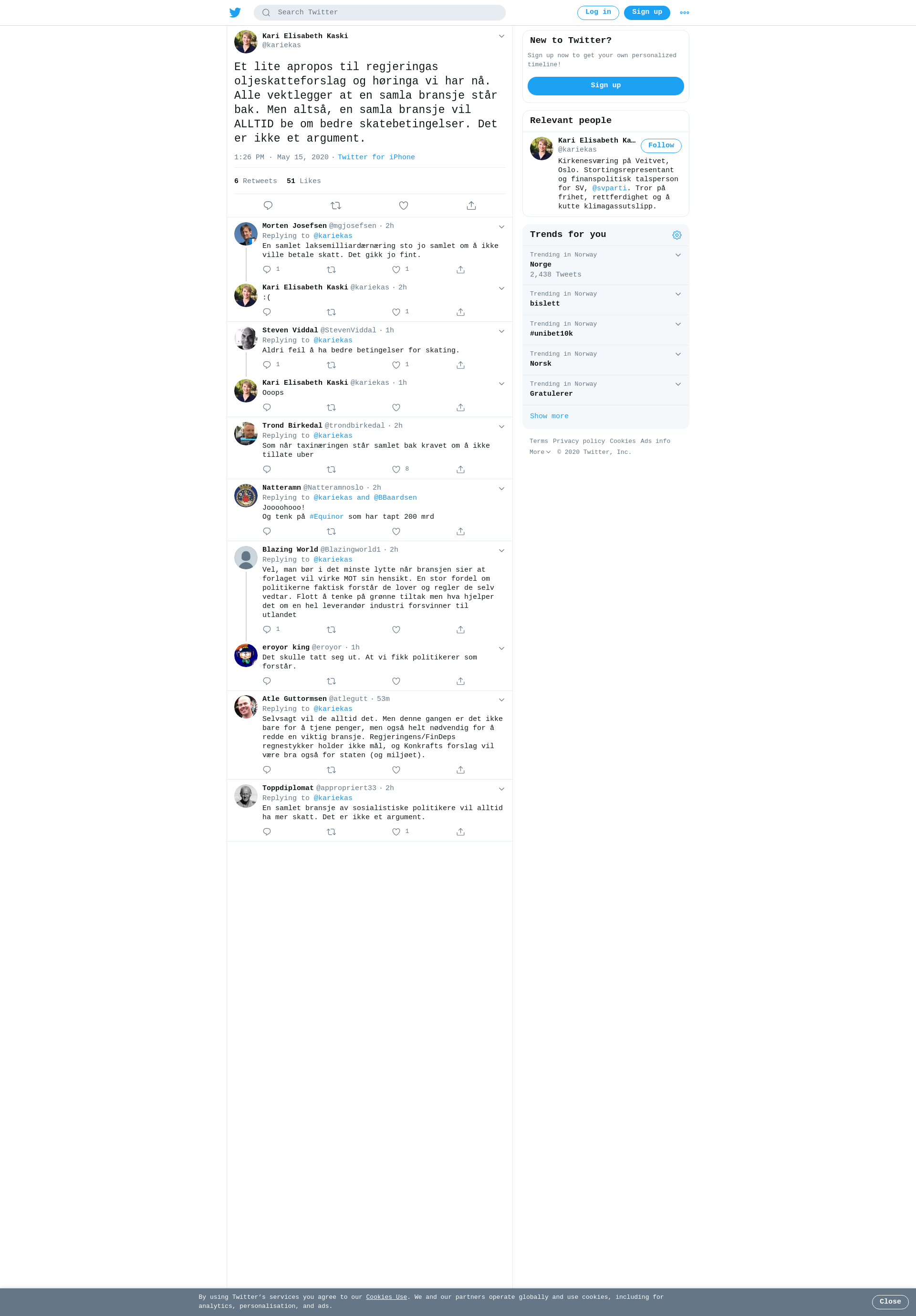 Et lite apropos til regjeringas oljeskatteforslag og høringa vi har nå. Alle vektlegger at en samla bransje står bak. Men altså, en samla bransje vil ALLTID be om bedre skatebetingelser. Det er ikke et argument.
