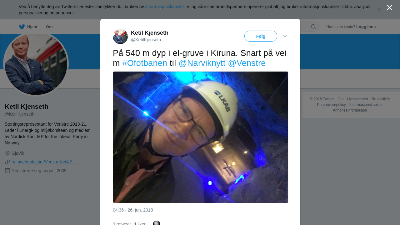 RT @KetilKjenseth: På 540 m dyp i el-gruve i Kiruna. Snart på vei m #Ofotbanen til @Narviknytt @Venstre https://t.co/HUyaCPfB9a