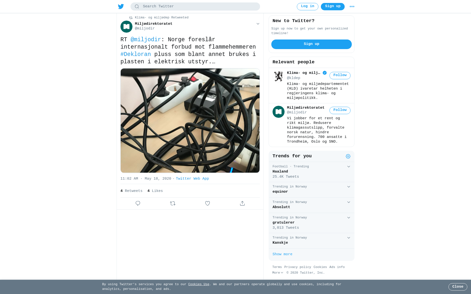 RT @miljodir: Norge foreslår internasjonalt forbud mot flammehemmeren #Dekloran pluss som blant annet brukes i plasten i elektrisk utstyr. #miljø #miljøgift