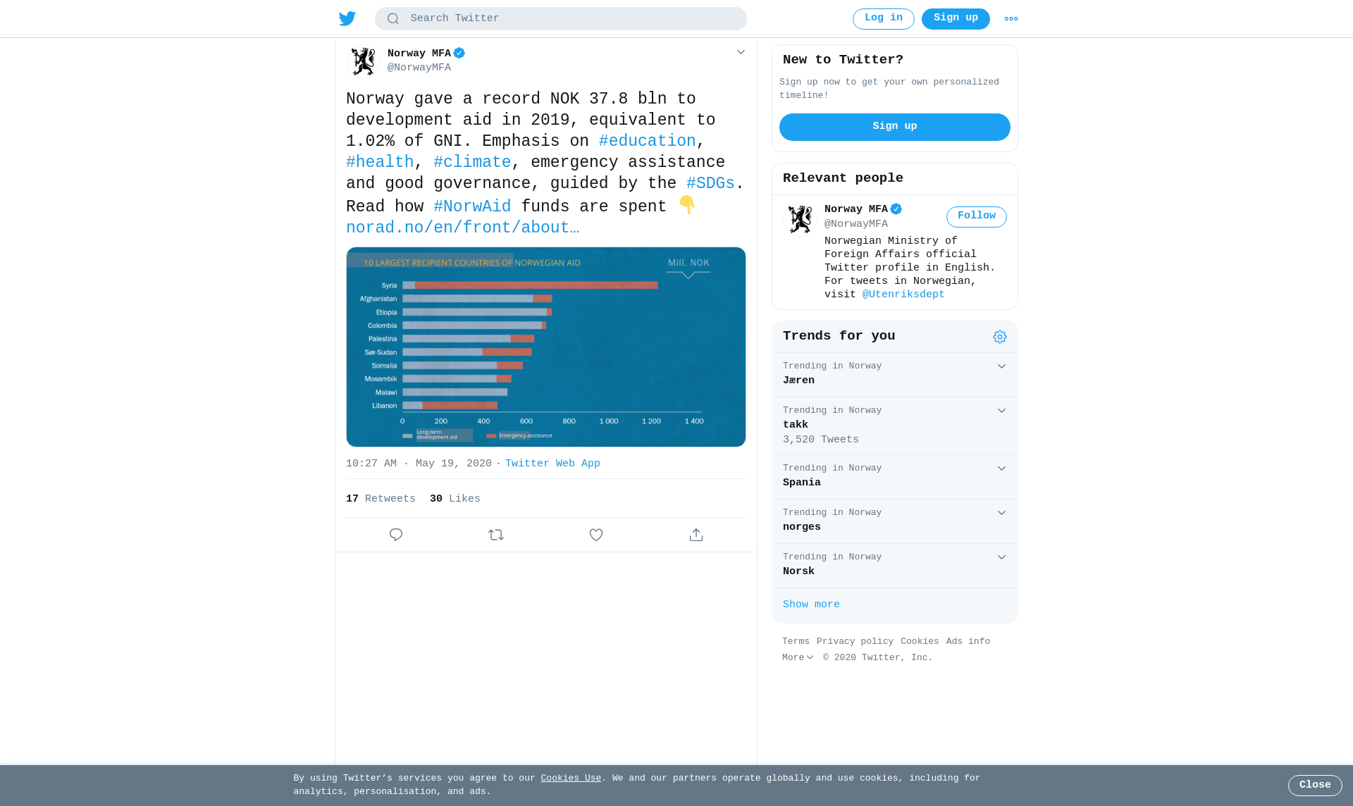 Norway gave a record NOK 37.8 bln to development aid in 2019, equivalent to 1.02% of GNI. Emphasis on #education, #health, #climate, emergency assistance and good governance, guided by the #SDGs. Read how #NorwAid funds are spent 👇