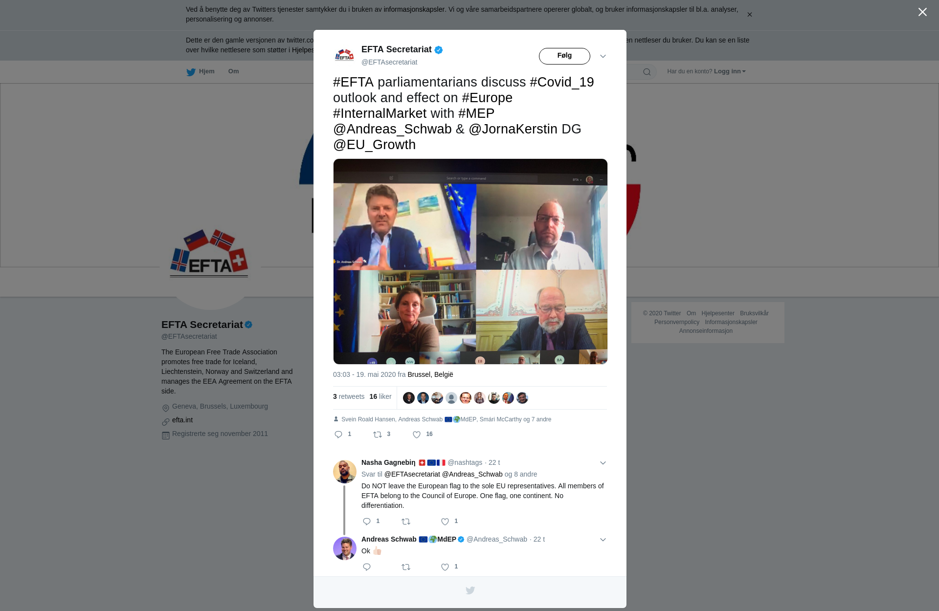 RT @EFTAsecretariat: #EFTA parliamentarians discuss #Covid_19 outlook and effect on #Europe #InternalMarket with #MEP @Andreas_Schwab & @JornaKerstin DG @EU_Growth https://t.co/rBkndOLOFd