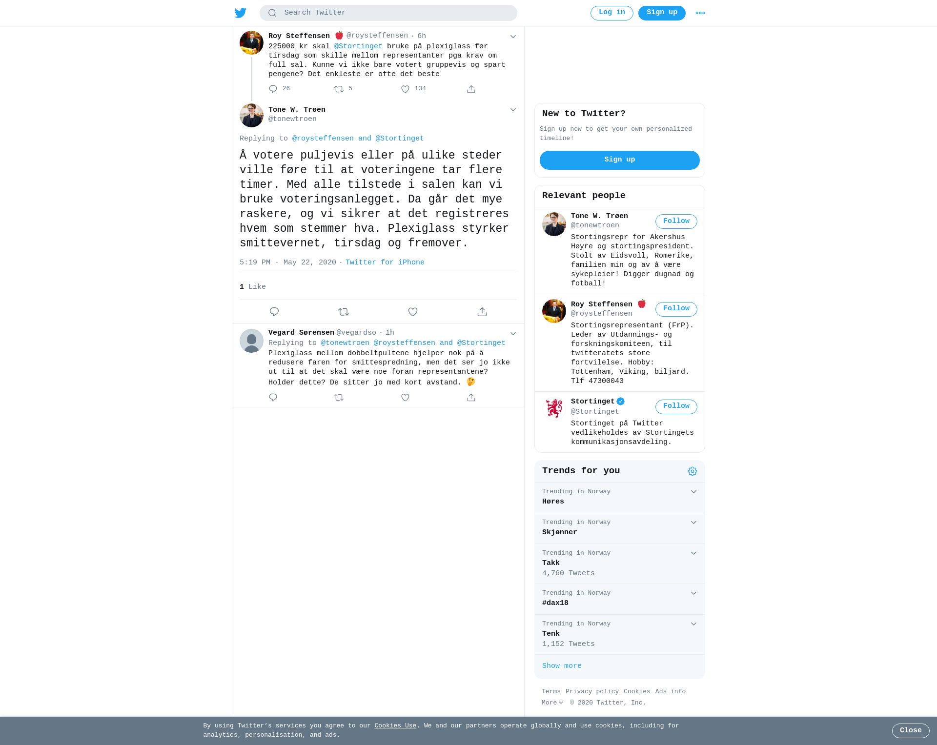 @roysteffensen @Stortinget Å votere puljevis eller på ulike steder ville føre til at voteringene tar flere timer. Med alle tilstede i salen kan vi bruke voteringsanlegget. Da går det mye raskere, og vi sikrer at det registreres hvem som stemmer hva. Plexiglass styrker smittevernet, tirsdag og fremover.