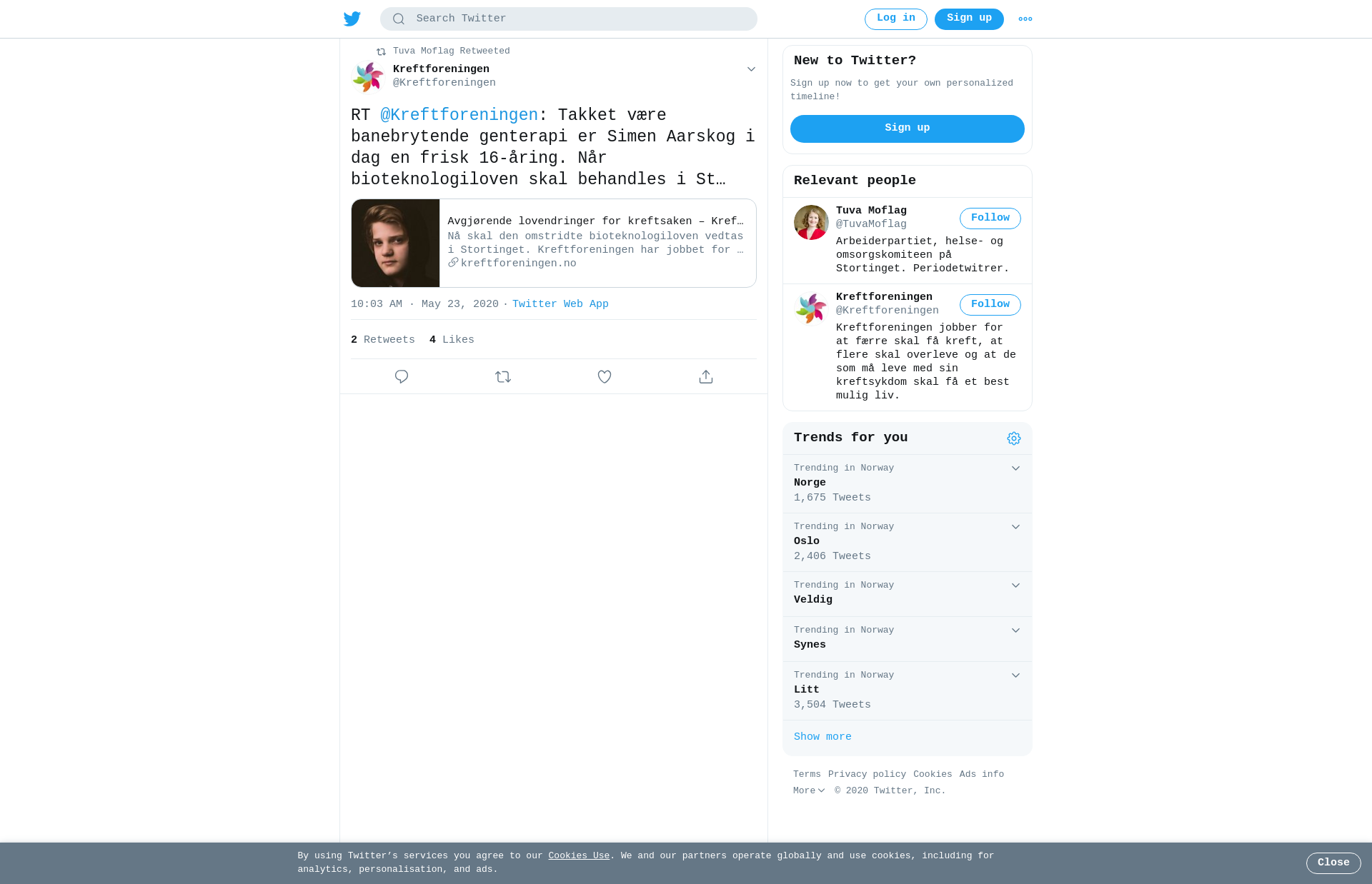 RT @Kreftforeningen: Takket være banebrytende genterapi er Simen Aarskog i dag en frisk 16-åring. Når bioteknologiloven skal behandles i Stortinget tirsdag skal det også avgjøres om flere kreftsyke vil få den samme muligheten. @Uneaba @bmoxnes @ChristianTG_FRP @PWAmundsen_FrP https://t.co/pjKLIaahF0