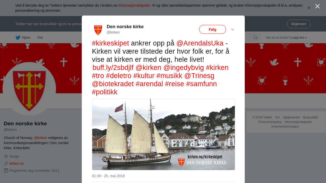 RT @kirken: #kirkeskipet ankrer opp på @ArendalsUka - Kirken vil være tilstede der hvor folk er, for å vise at kirken er med de… https://t.co/PDdxMjk7Xu