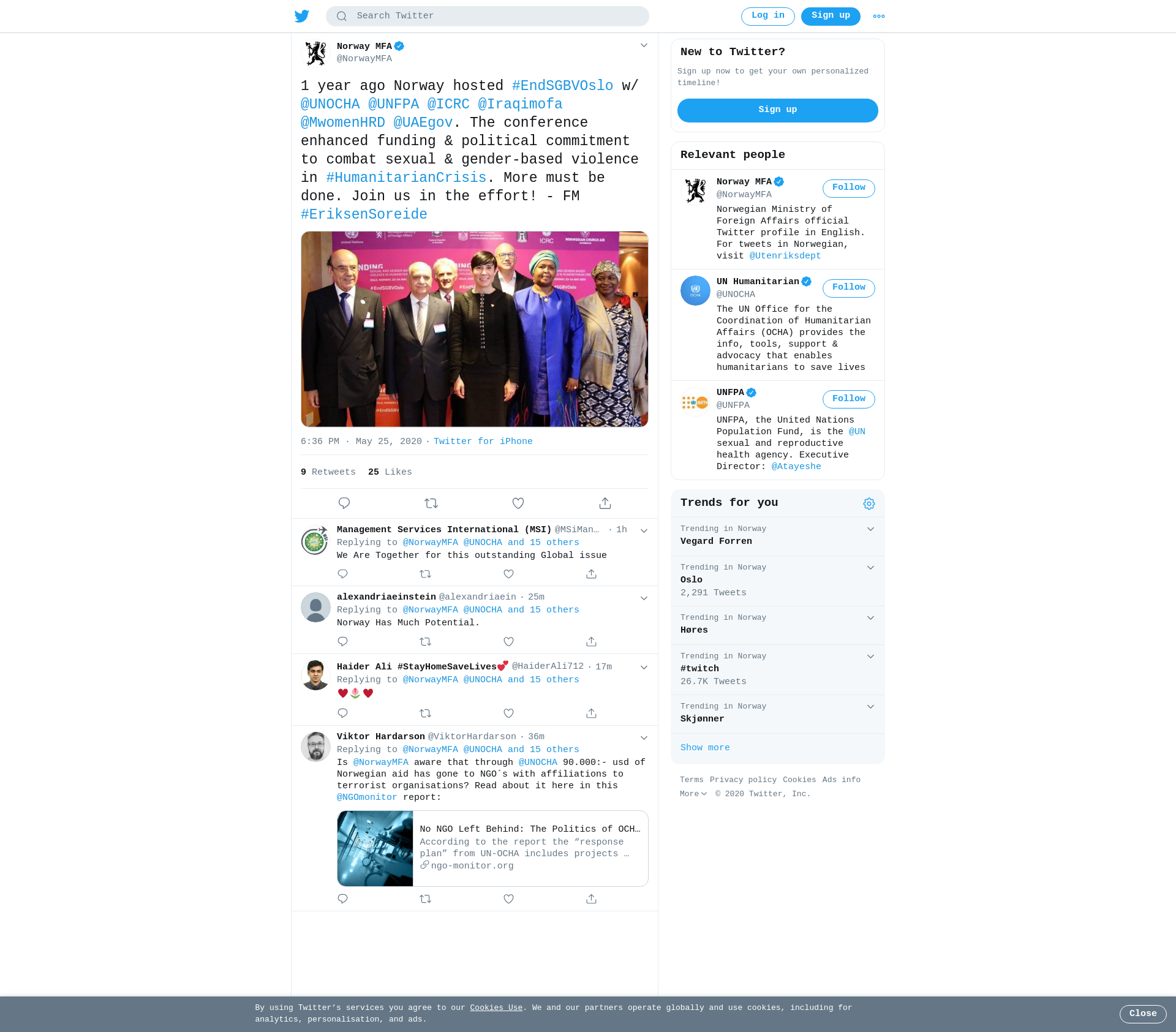 1 year ago Norway hosted #EndSGBVOslo w/@UNOCHA @UNFPA @ICRC @Iraqimofa @MwomenHRD @UAEgov. The conference enhanced funding & political commitment to combat sexual & gender-based violence in #HumanitarianCrisis. More must be done. Join us in the effort! - FM #EriksenSoreide https://t.co/BvyxDSt39V