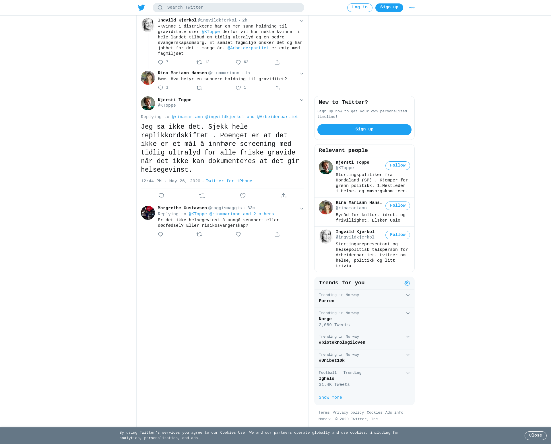 @rinamariann @ingvildkjerkol @Arbeiderpartiet Jeg sa ikke det. Sjekk hele replikkordskiftet . Poenget er at det ikke er et mål å innføre screening med tidlig ultralyd for alle friske gravide når det ikke kan dokumenteres at det gir helsegevinst.
