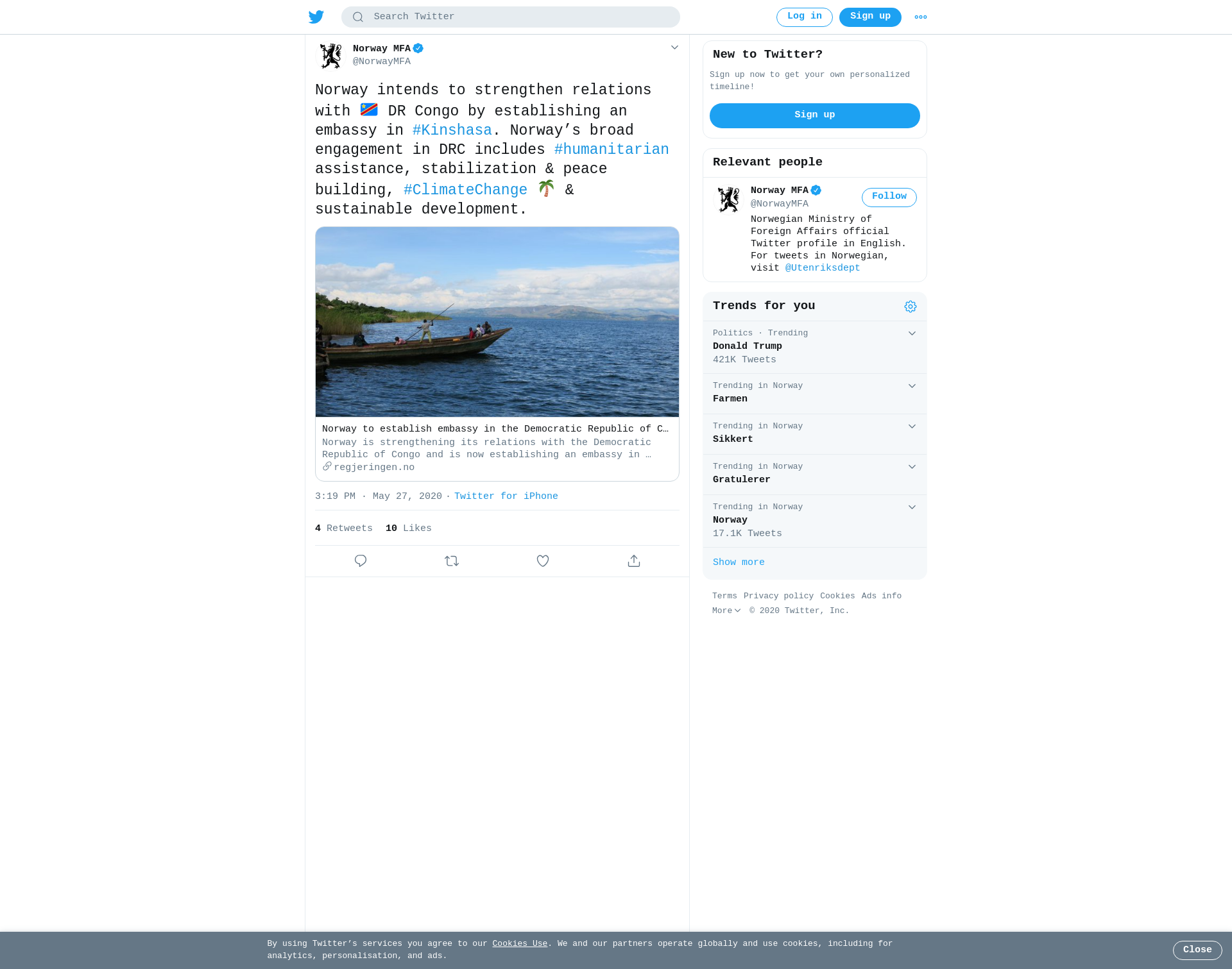 Norway intends to strengthen relations with 🇨🇩 DR Congo by establishing an embassy in #Kinshasa. Norway’s broad engagement in DRC includes #humanitarian assistance, stabilization & peace building, #ClimateChange 🌴 & sustainable development. https://t.co/lgyNh6HSAt