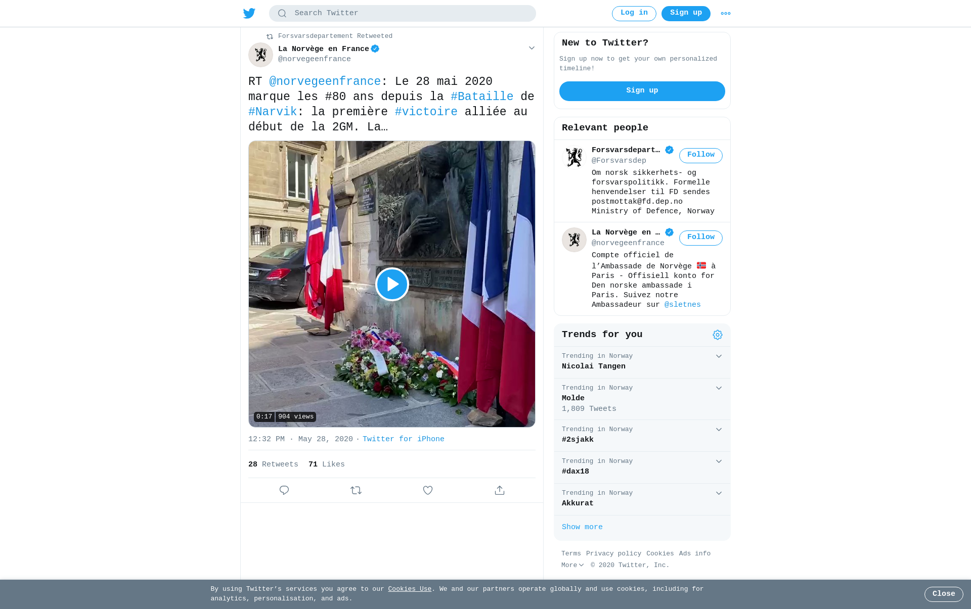 RT @norvegeenfrance: Le 28 mai 2020 marque les #80 ans depuis la #Bataille de #Narvik: la première #victoire alliée au début de la 2GM. La contribution 🇫🇷, ainsi que celle des forces 🇳🇴, 🇬🇧 et 🇵🇱, libéra Narvik le 28 mai #1940 #mémoire @florence_parly @Armees_Gouv @27bim @BakkeJensen @sletnes https://t.co/hSgOvNKodp