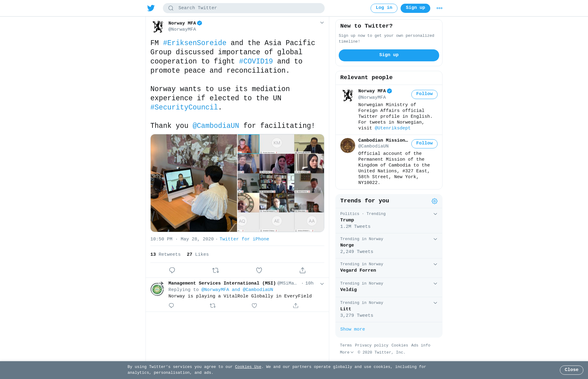 FM #EriksenSoreide and the Asia Pacific Group discussed importance of global cooperation to fight #COVID19 and to promote peace and reconciliation.