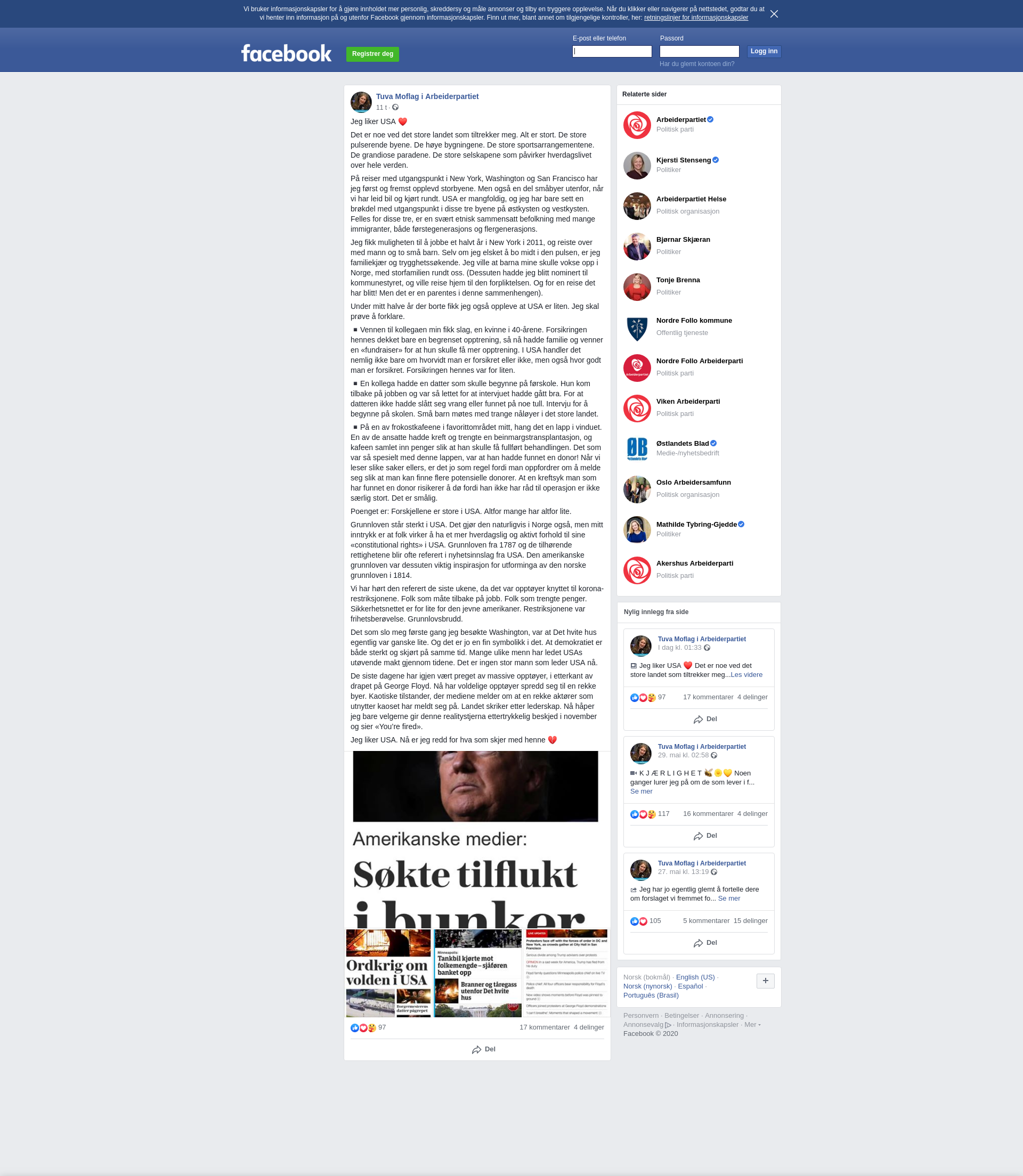 De siste dagene har igjen vært preget av massive opptøyer, i etterkant av drapet på George Floyd. Nå har voldelige opptøyer spredd seg til en rekke byer. Kaotiske tilstander, der mediene melder om at en rekke aktører som utnytter kaoset har meldt seg på. Landet skriker etter lederskap. Nå håper jeg bare velgerne gir denne realitystjerna ettertrykkelig beskjed i november og sier «You’re fired».
