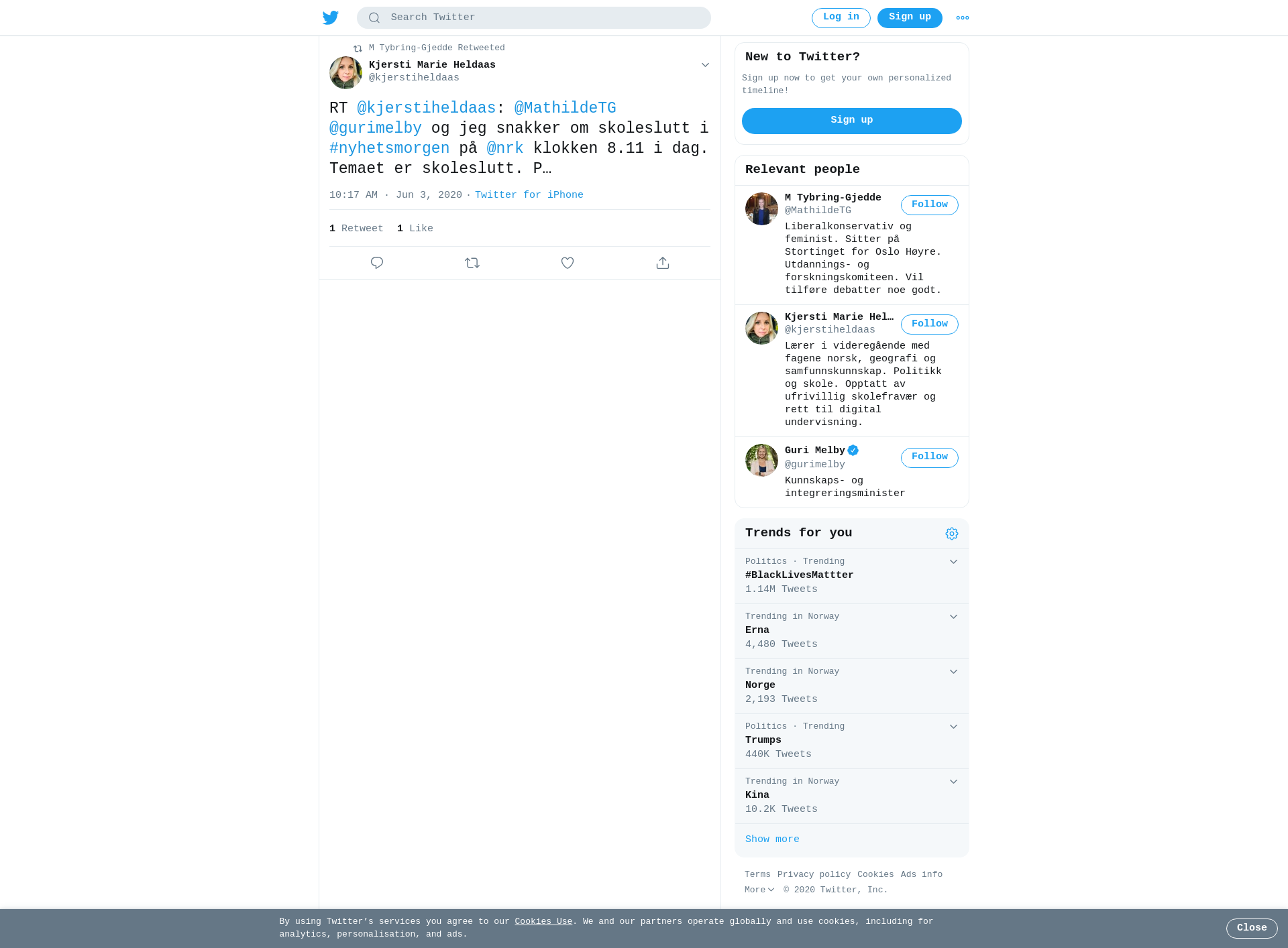 RT @kjerstiheldaas: @MathildeTG @gurimelby og jeg snakker om skoleslutt i #nyhetsmorgen på @nrk klokken 8.11 i dag. Temaet er skoleslutt. På min skole slutter undervisningen på torsdag. Elevene får uker lengre skoleferie. Til tross for at regjeringen har vært tydelige om at læring skal prioriteres.