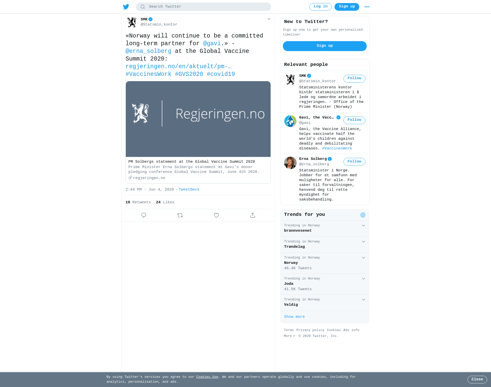 «Norway will continue to be a committed long-term partner for @gavi.» - @erna_solberg at the Global Vaccine Summit 2020: https://t.co/0oaozhtGqk #VaccinesWork #GVS2020 #covid19