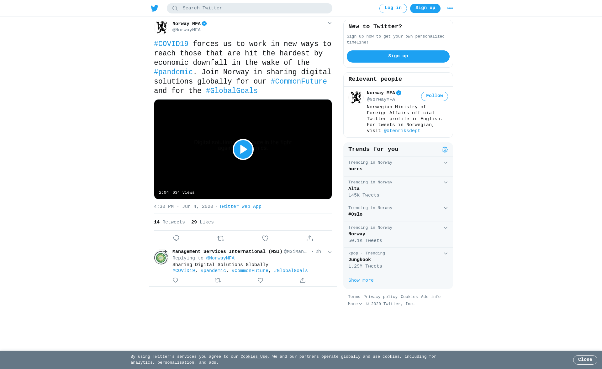 #COVID19 forces us to work in new ways to reach those that are hit the hardest by economic downfall in the wake of the #pandemic. Join Norway in sharing digital solutions globally for our #CommonFuture and for the #GlobalGoals https://t.co/Dkdq8WY9Pu