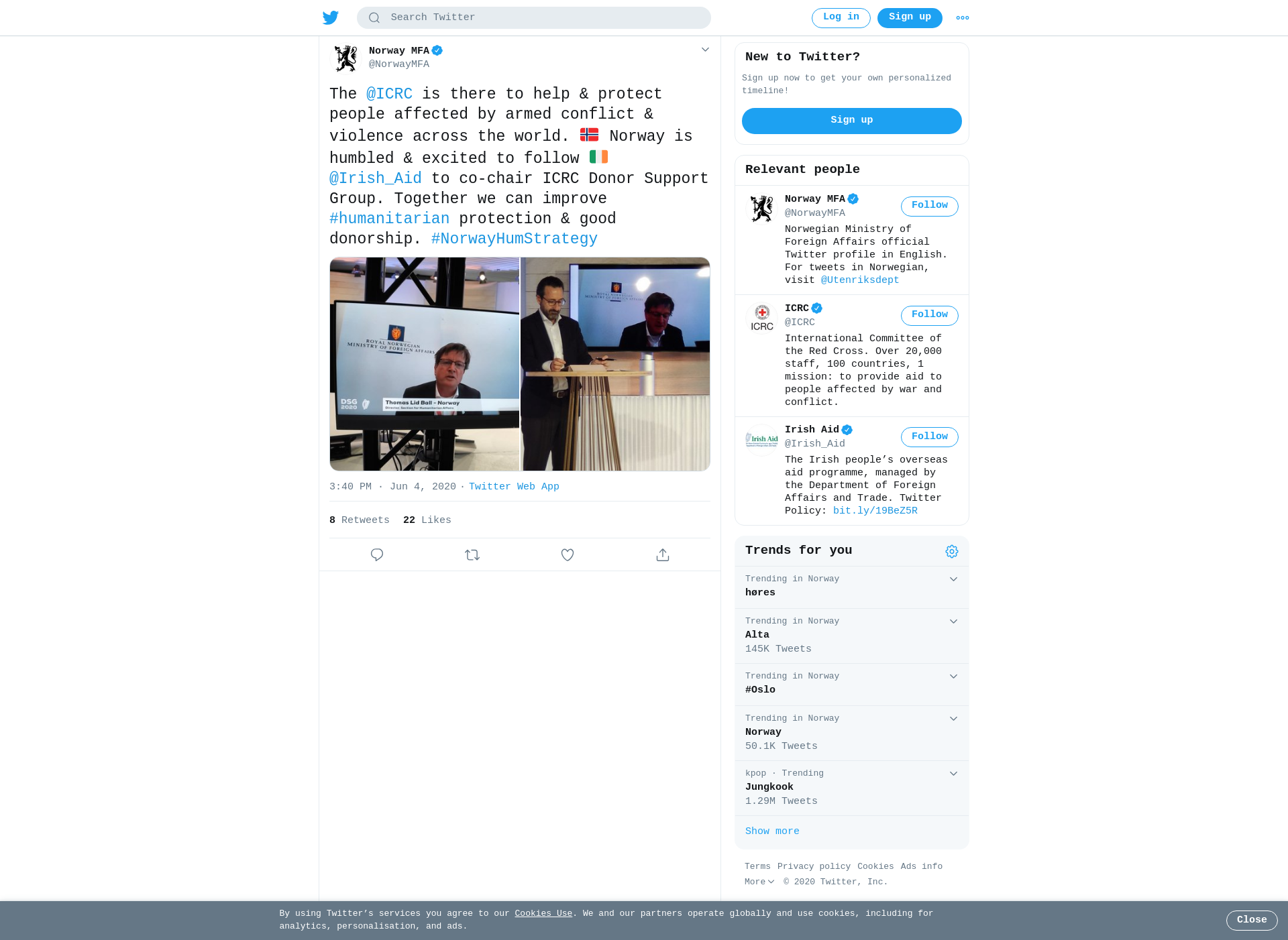 The @ICRC is there to help & protect people affected by armed conflict & violence across the world. 🇳🇴 Norway is humbled & excited to follow 🇮🇪 @Irish_Aid to co-chair ICRC Donor Support Group. Together we can improve #humanitarian protection & good donorship. #NorwayHumStrategy https://t.co/25prFi4khp