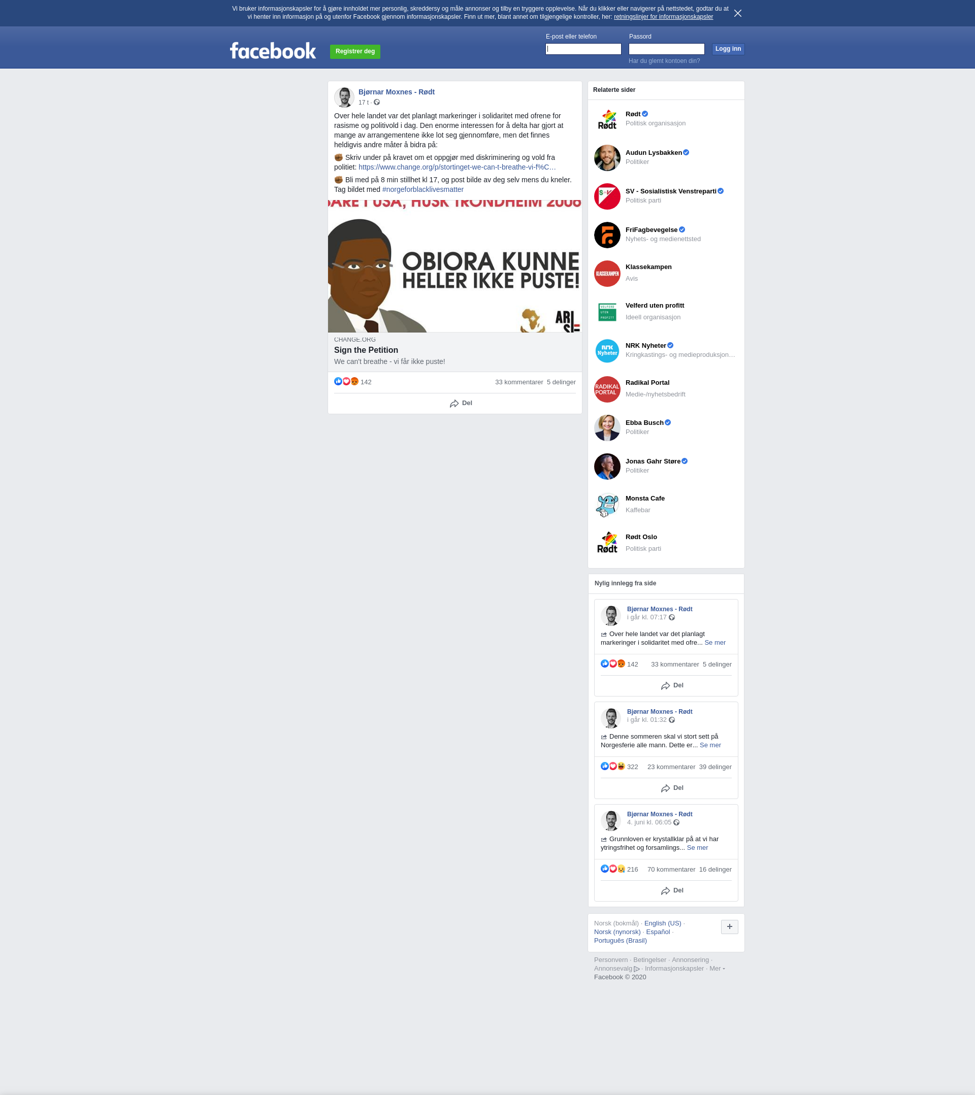 ✊🏾 Skriv under på kravet om et oppgjør med diskriminering og vold fra politiet: https://www.change.org/p/stortinget-we-can-t-breathe-vi-f%C3%A5r-ikke-puste?fbclid=IwAR3JZCwR7RJhnBRRldhd0wFplTxVikMExMgLWOy_ss1vLQEPPw7uEm1EUFY