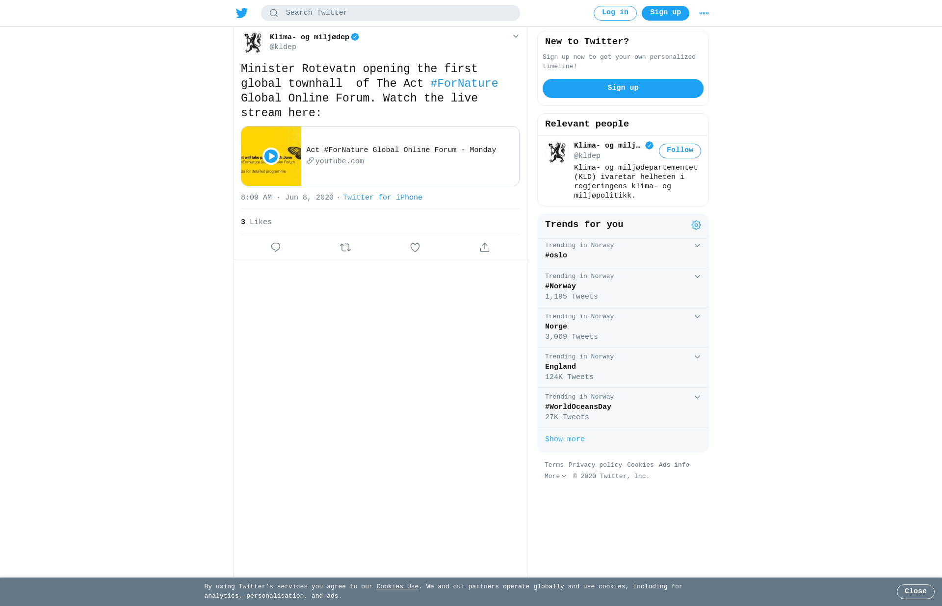 Minister Rotevatn opening the first global townhall of The Act #ForNature Global Online Forum. Watch the live stream here: https://t.co/6lDV75hypO